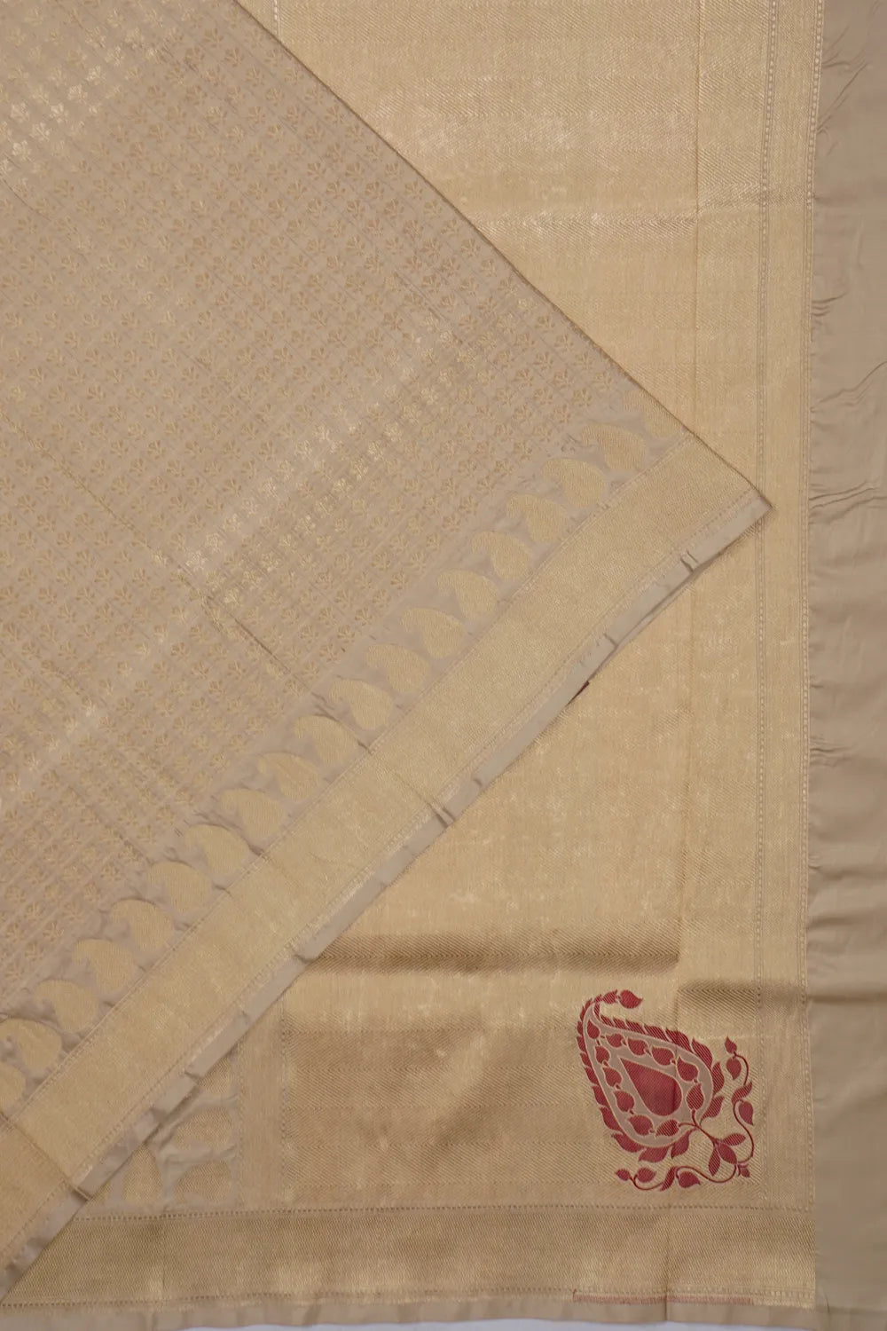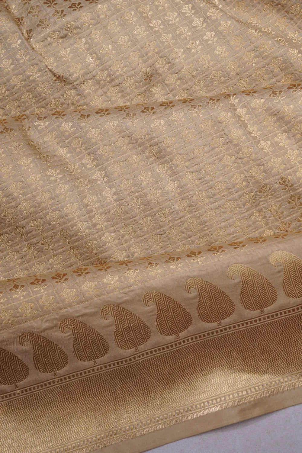 Banarasi Silk Checks And Butta Beige Saree