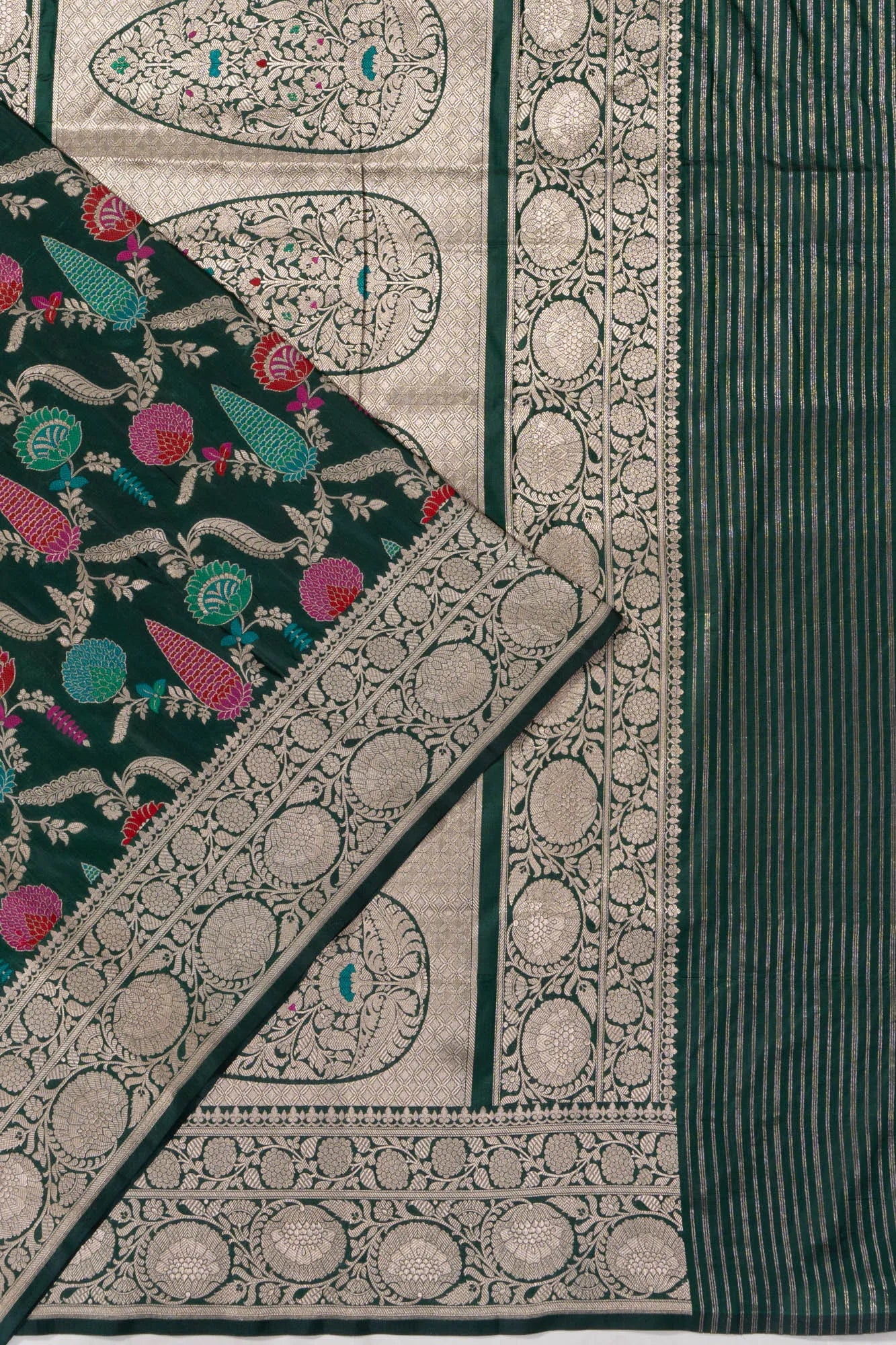 Banarasi Silk Jaal Dark Green Saree