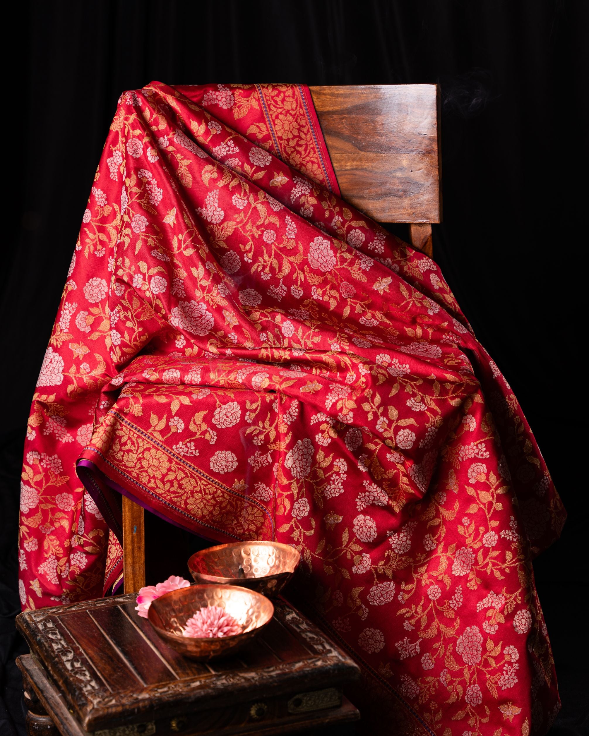 Banarasi Silk Jamdani Jaal Raktambari Saree