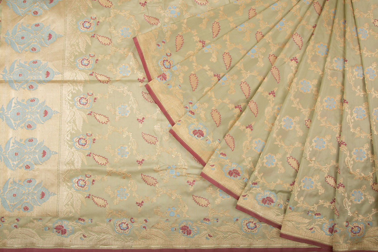 Banarasi Silk Kadwa Jaal Pastel Green Saree