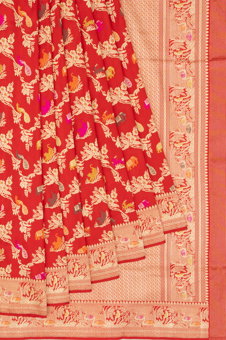 Banarasi Silk Kadwa Jaal Red Saree