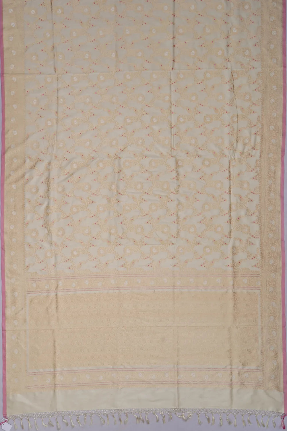 Banarasi Silk Kadwa Meenakari Jaal Cream Saree