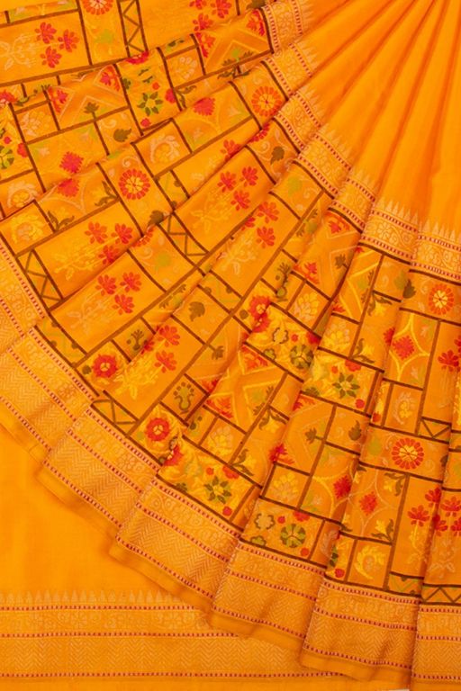 Banarasi Silk Kadwa Plain Mustard Yellow Saree