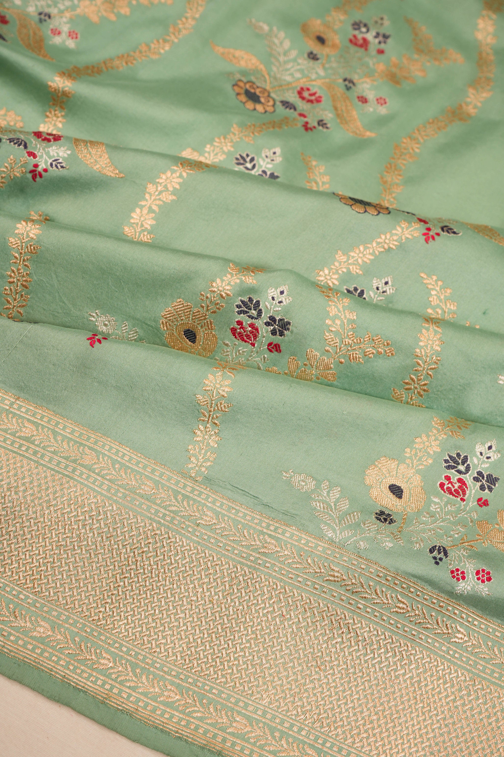 Banarasi Silk Meenakari Jaal Pastel Green Saree