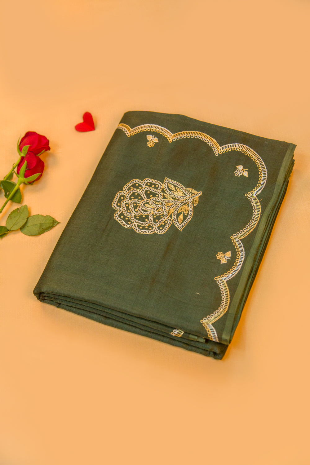 The plain body adds a simplistic charm, while the contrast gold and silver zari embroidery small border adds a hint of glamour The self embroidery pallu adds a touc