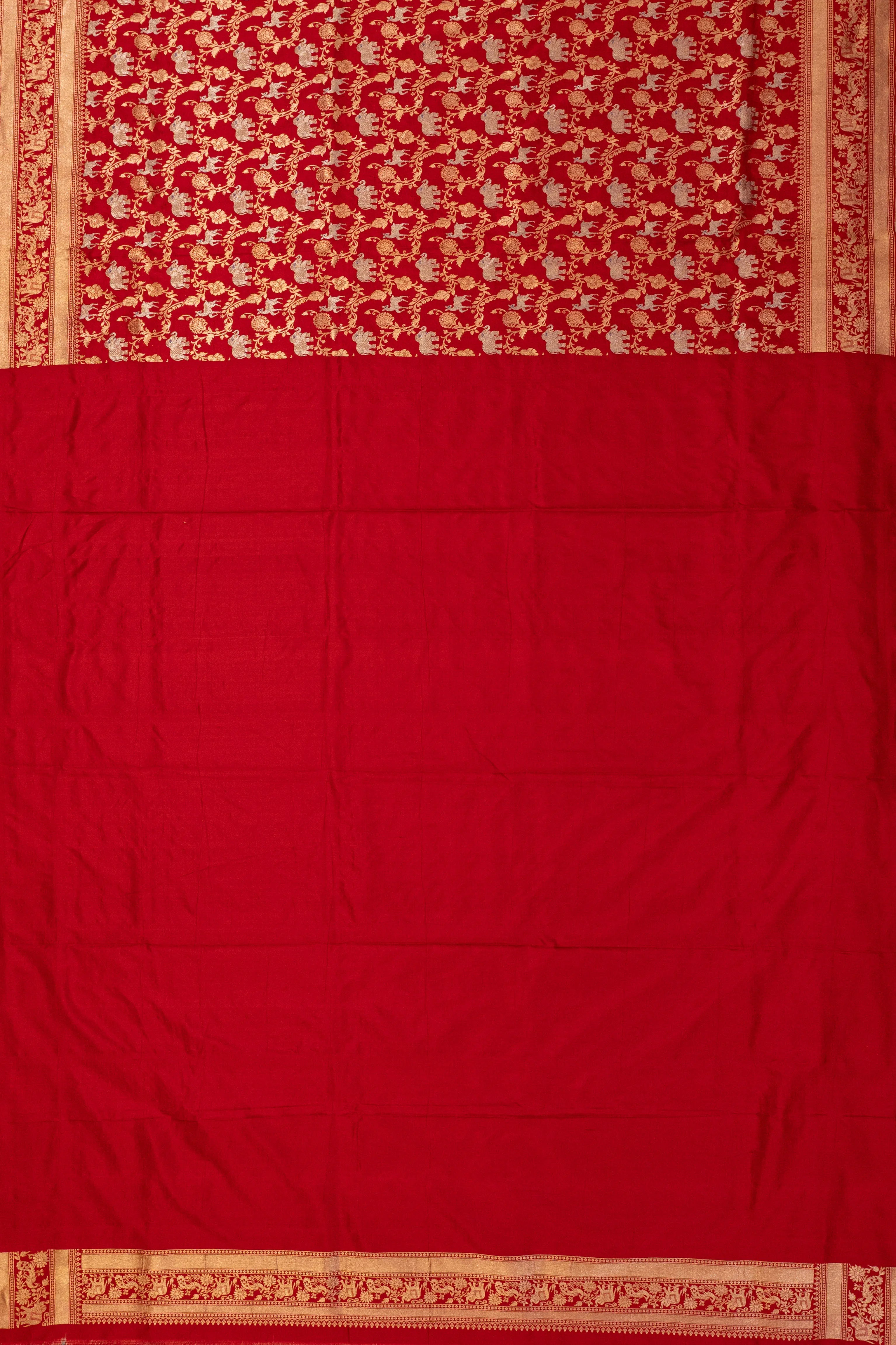 Banarasi Silk Shikargah Jaal Red Saree