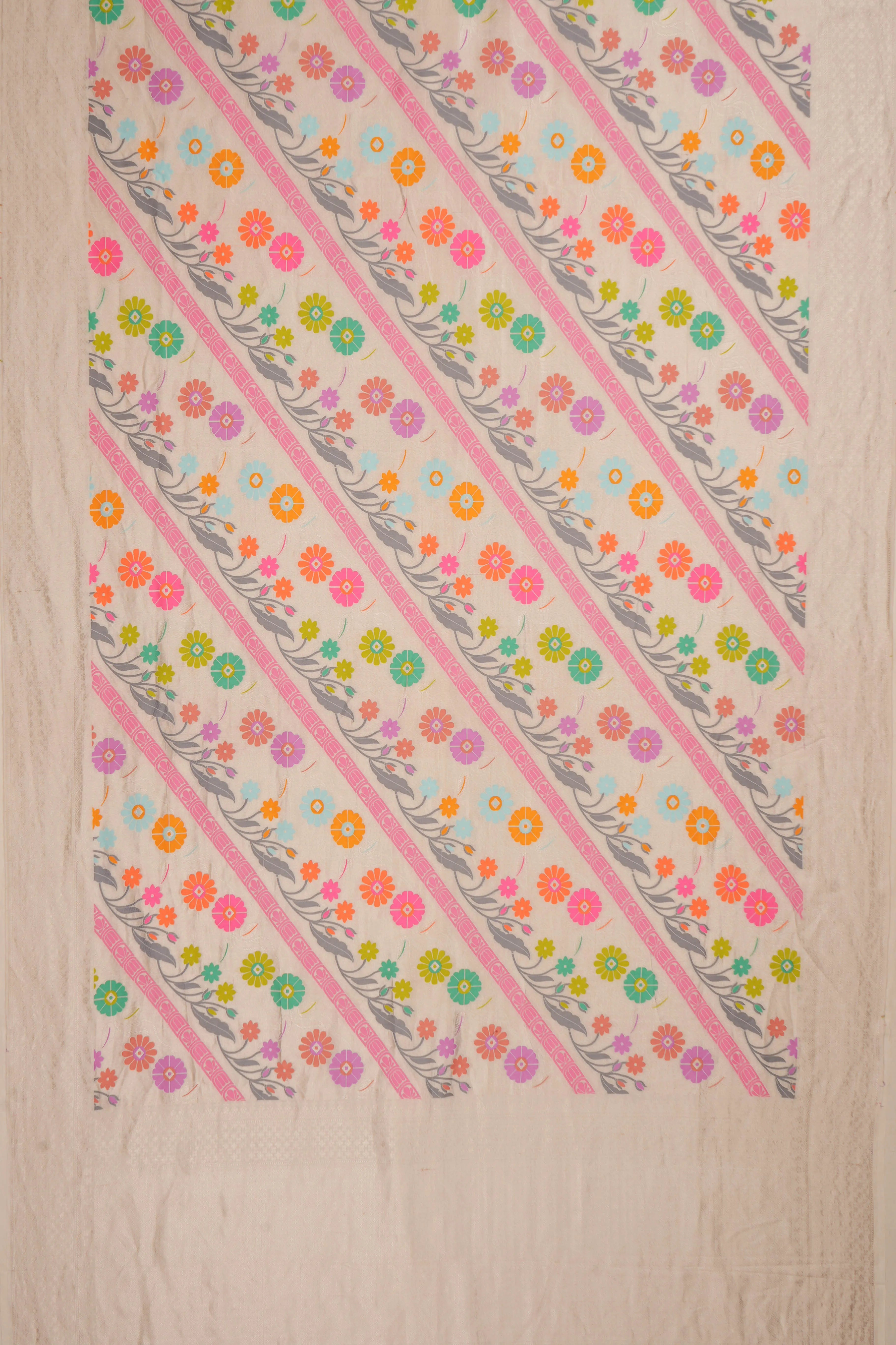 Self silver zari floral brocade small border, subtly enhancing the design with its delicate details.
