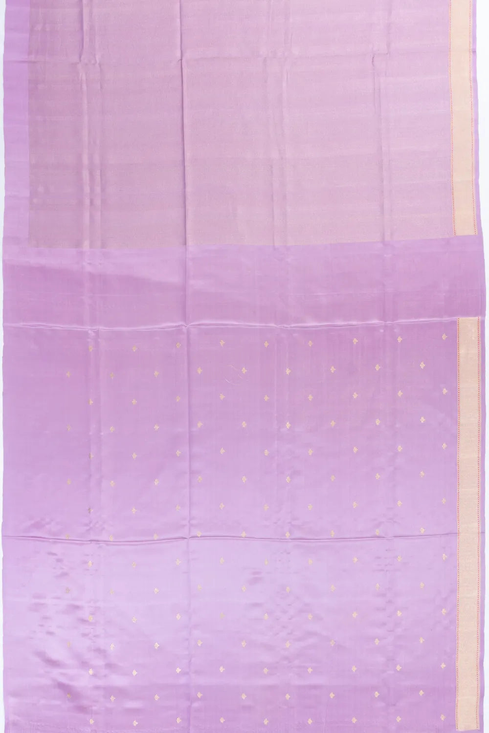 Body: This plain Lavender saree in Banarasi Silk Tissue Twill offers a soft and serene aesthetic with a graceful sheen.