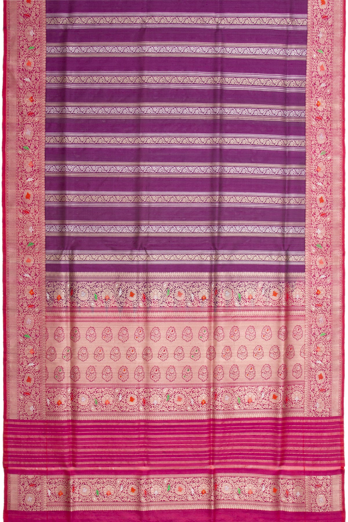 Silver zari vertical lines with gold zari floral vines in between, creating a unique striped pattern.