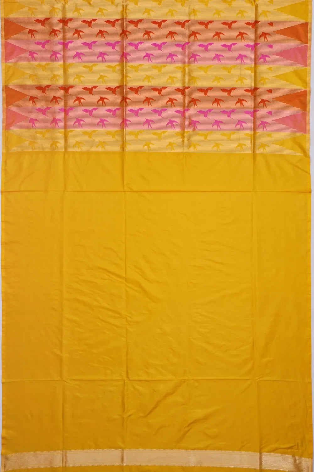 Banarasi Silk Vertical Lines Rangkat Yellow Saree