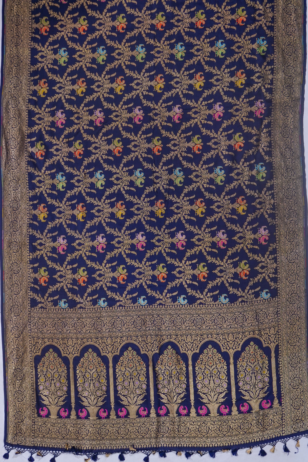Banarasi Tussar Georgette Jaal Dark Blue Saree