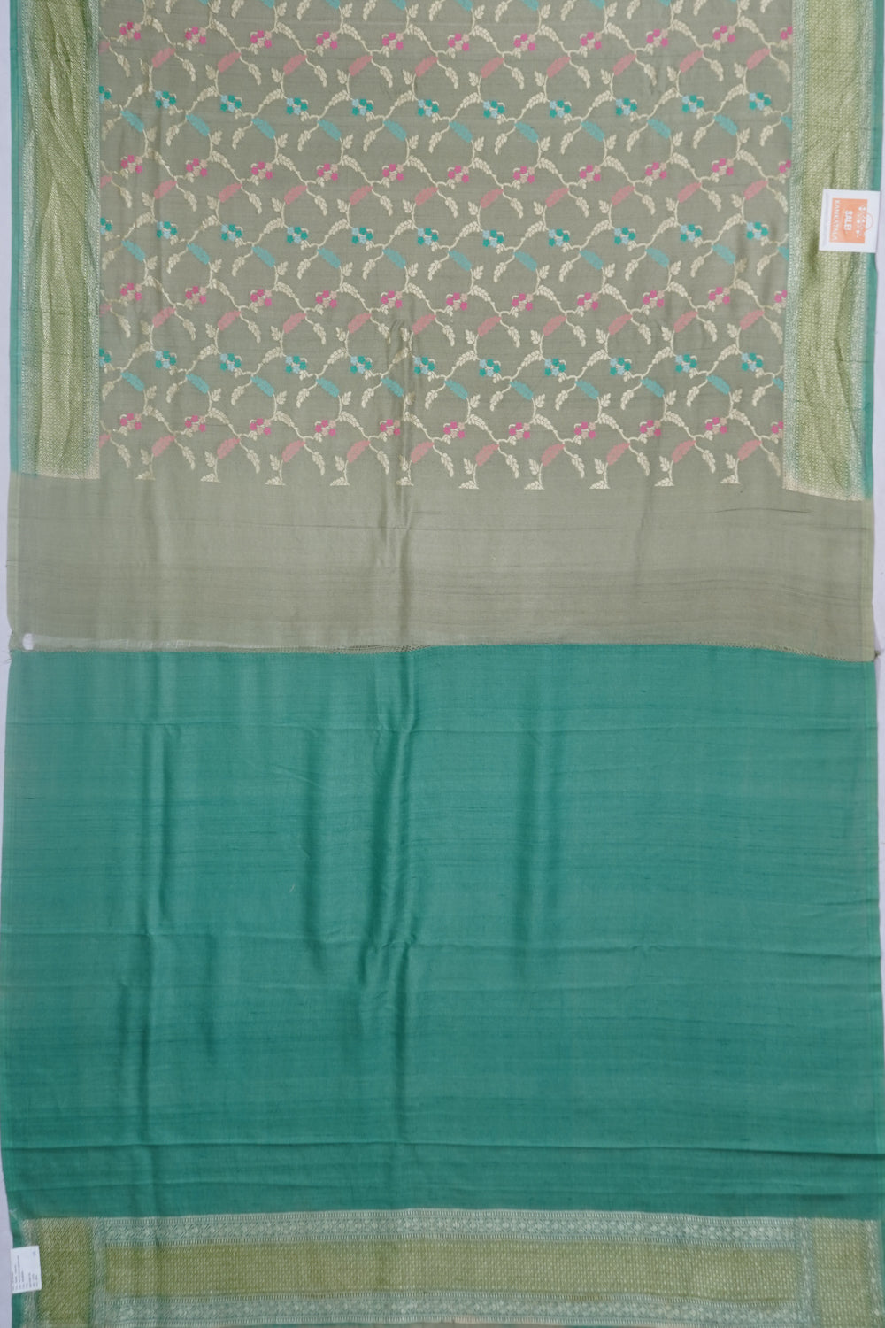 Banarasi Tussar Georgette Jaal Pastel Green Saree, Body.