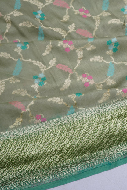 Banarasi Tussar Georgette Jaal Pastel Green Saree