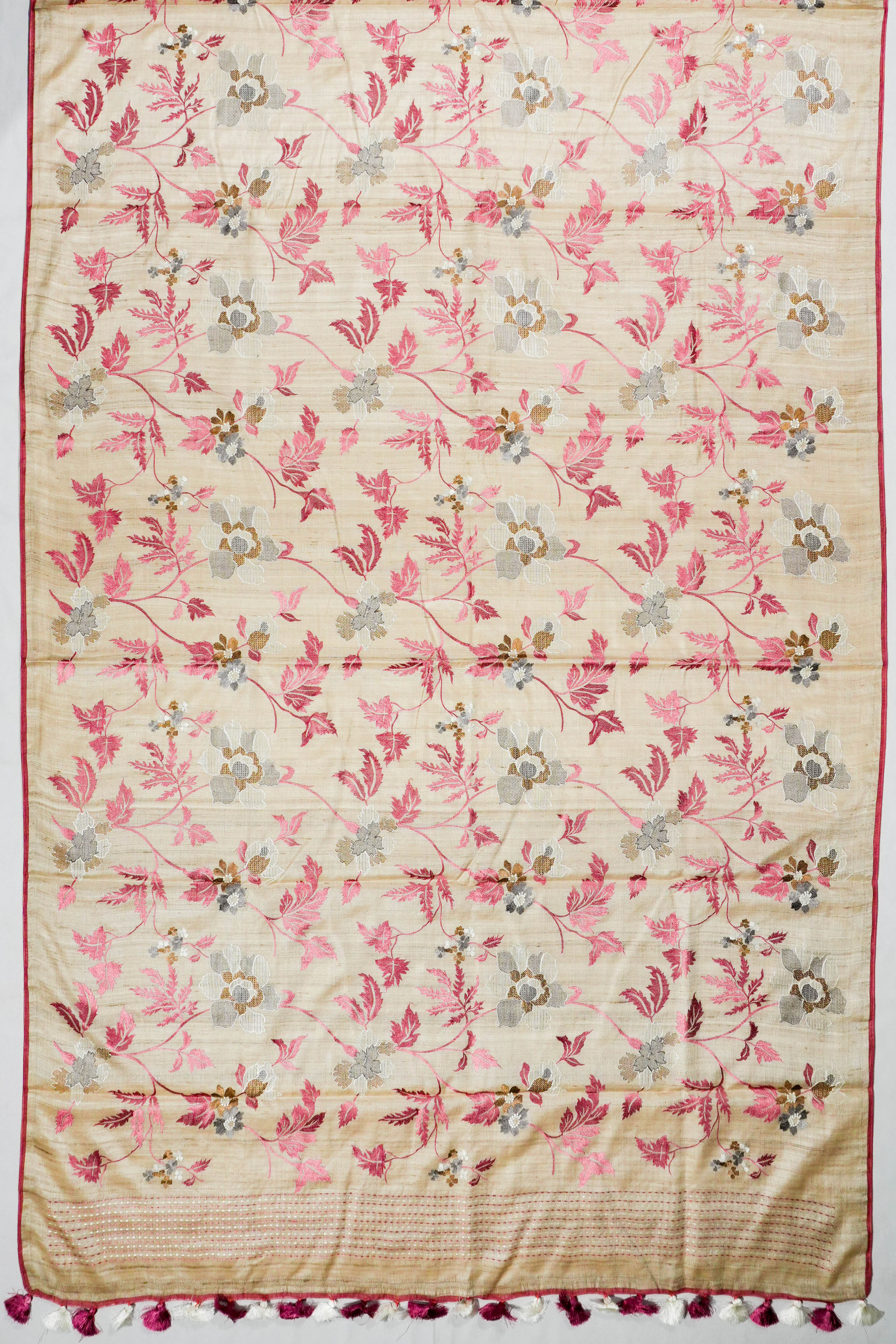 Bhagalpuri Tussar All Over Floral Embroidery Beige Saree 1214906999