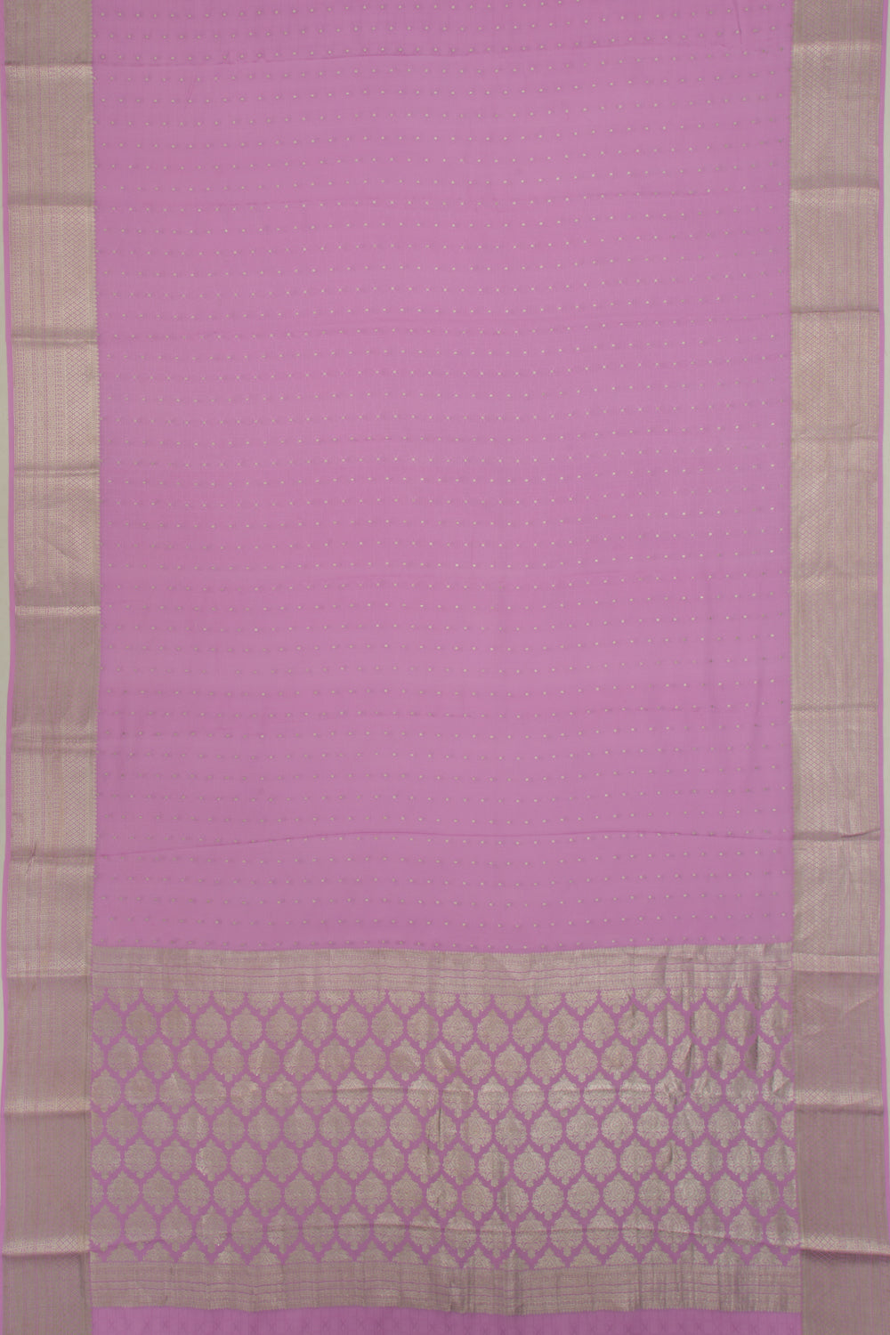 Contrasting silver zari brocade medium border adds a touch of sophistication The pallu features a contrasting silver zari brocade design Comes with a self plain blouse with zari borders Perfect for