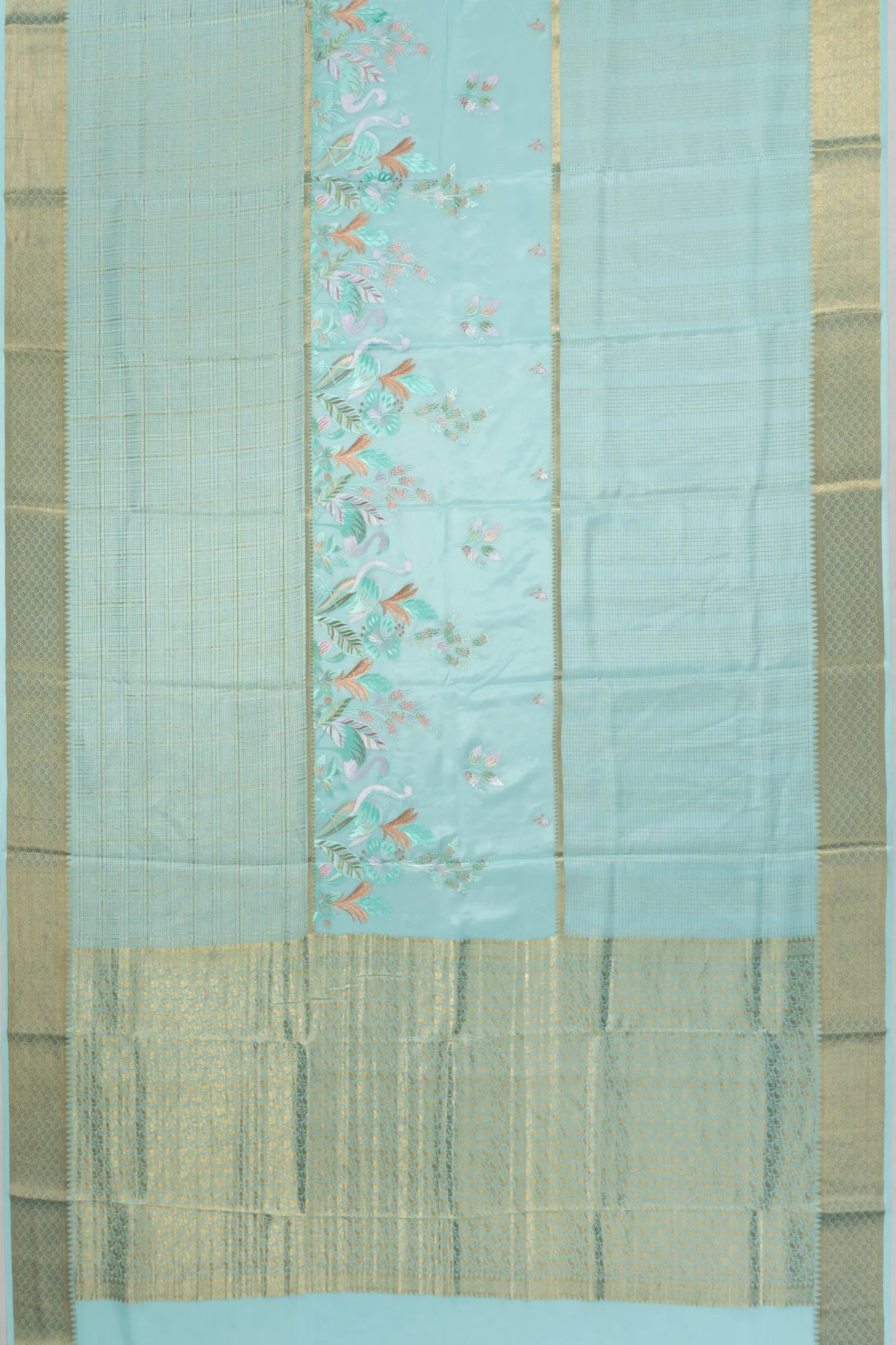 Binny Silk Half And Half Checks And Embroidery Patel Blue Saree