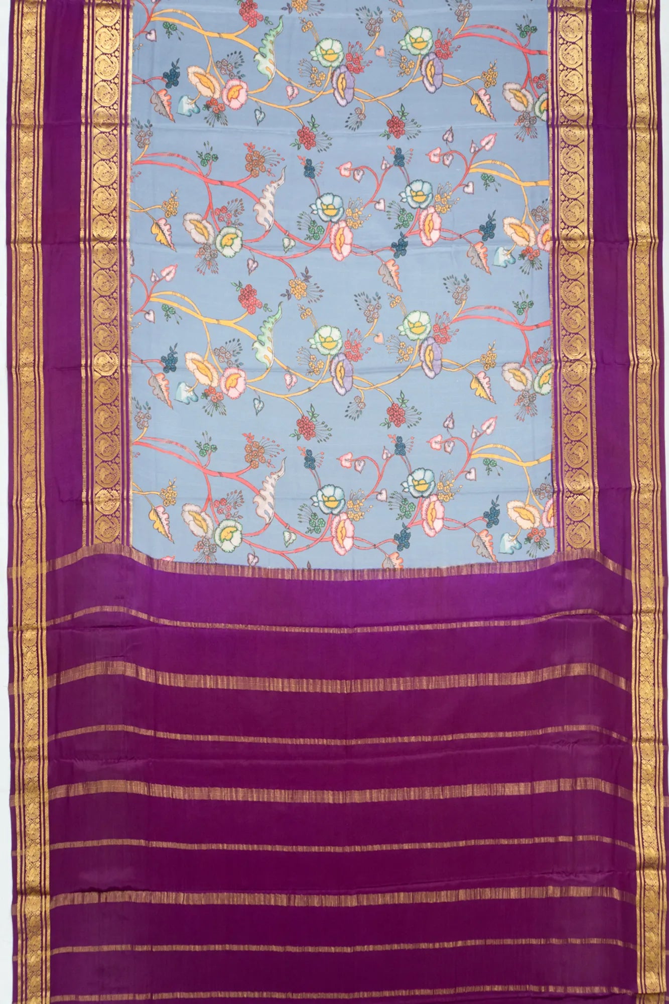 Accompanied by a complementary purple blouse with zari borders, this saree offers a harmonious and refined look