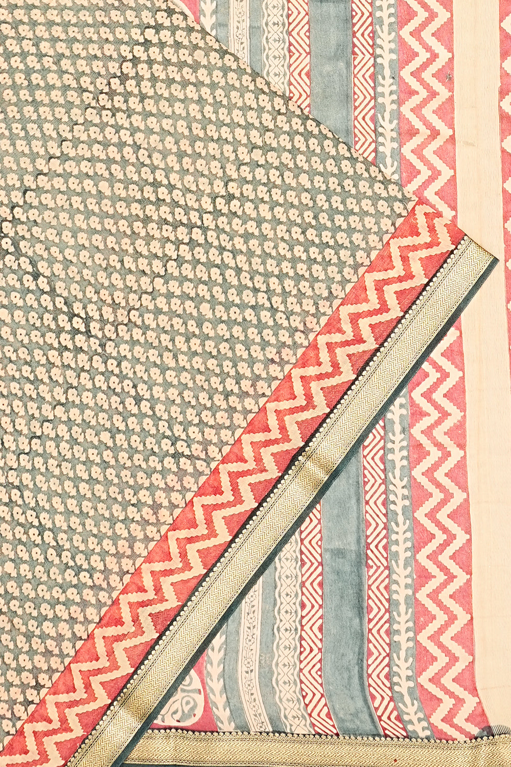 Self gold zari zig-zag lines small border.