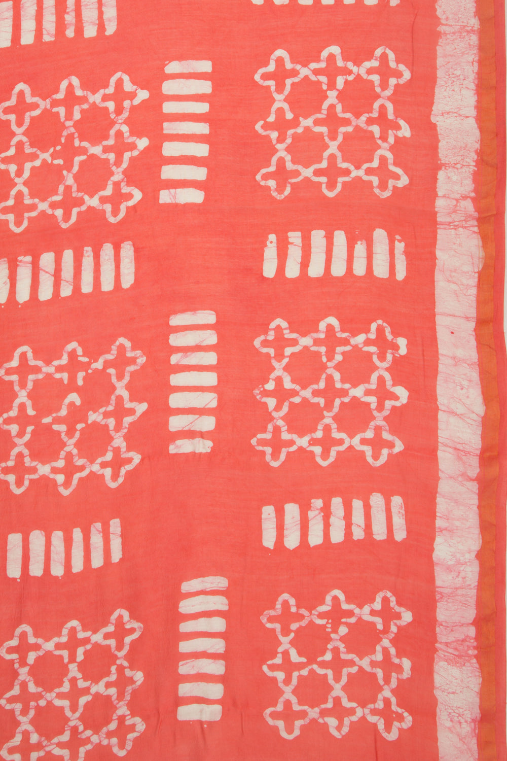 Chanderi Cotton Block Printed Orange Saree