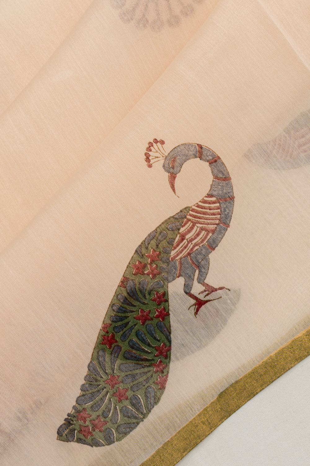 Chanderi Cotton Block Printed Pastel Orange Saree