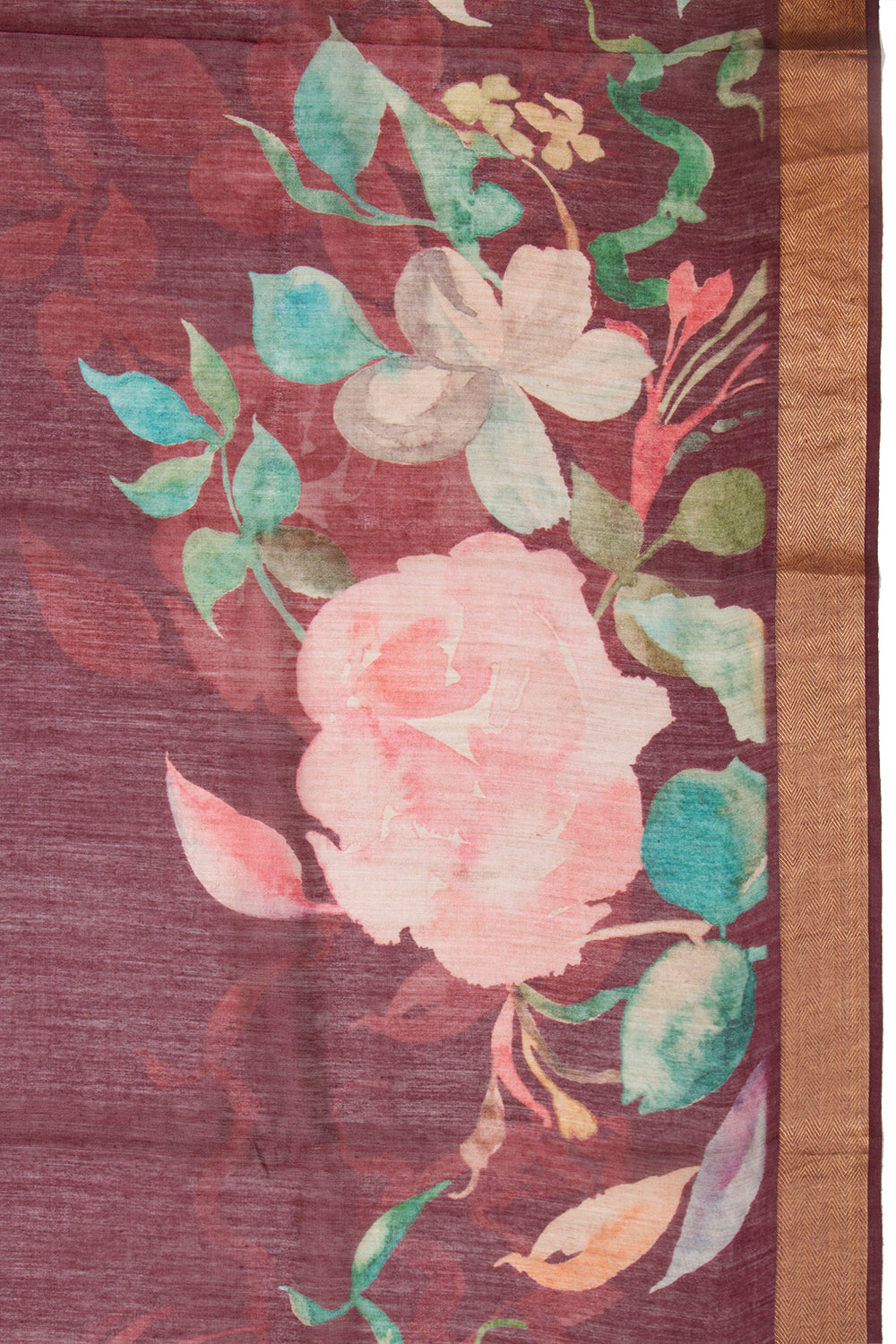 Chanderi Cotton Floral Printed Burgundy Saree