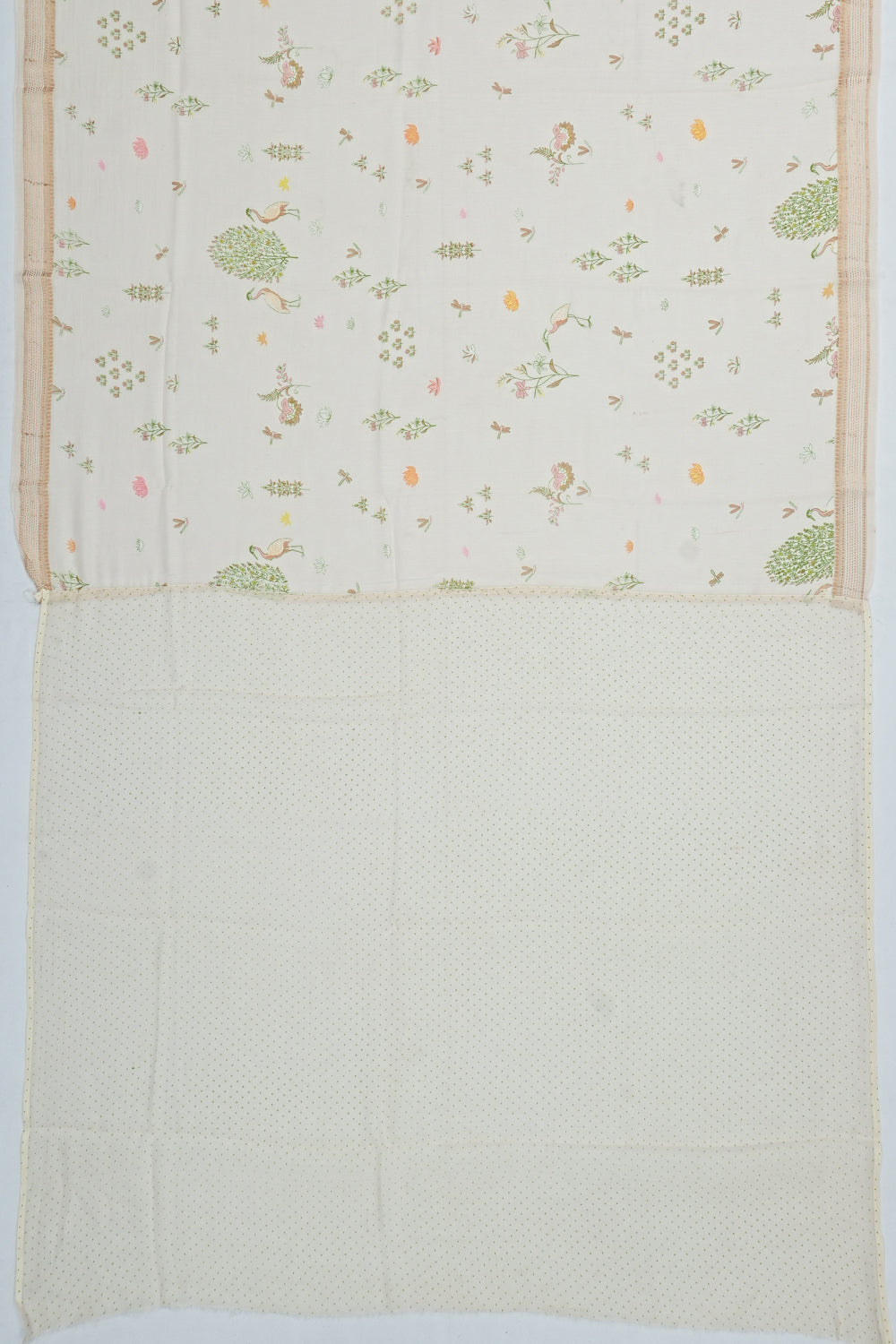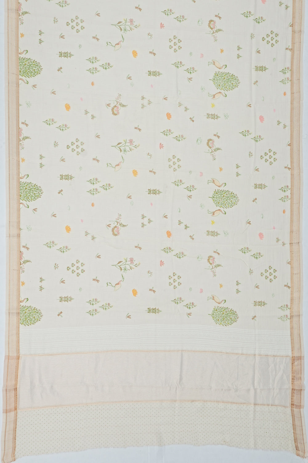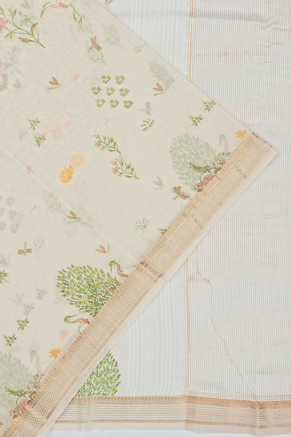 Chanderi Cotton Floral Printed Cream Saree 1215005695