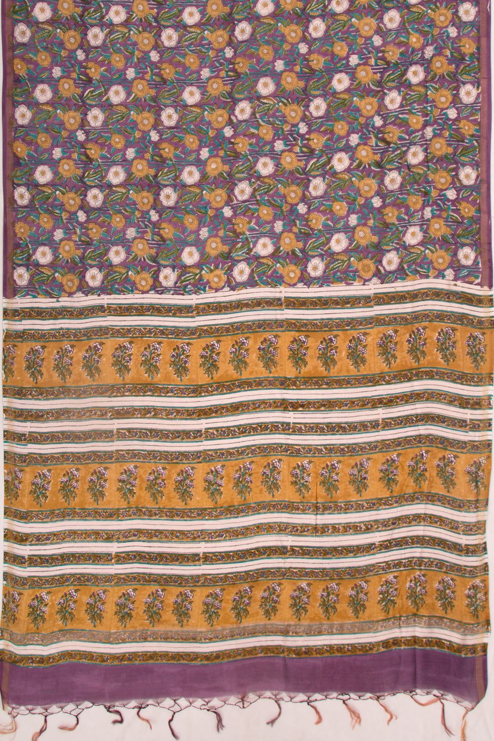 Chanderi Cotton Floral Printed Lilac Saree
