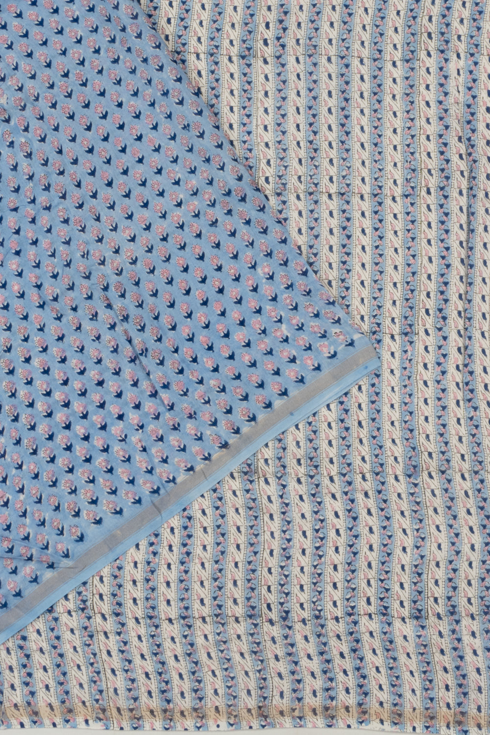 Chanderi Cotton Floral Printed Pastel Blue Saree