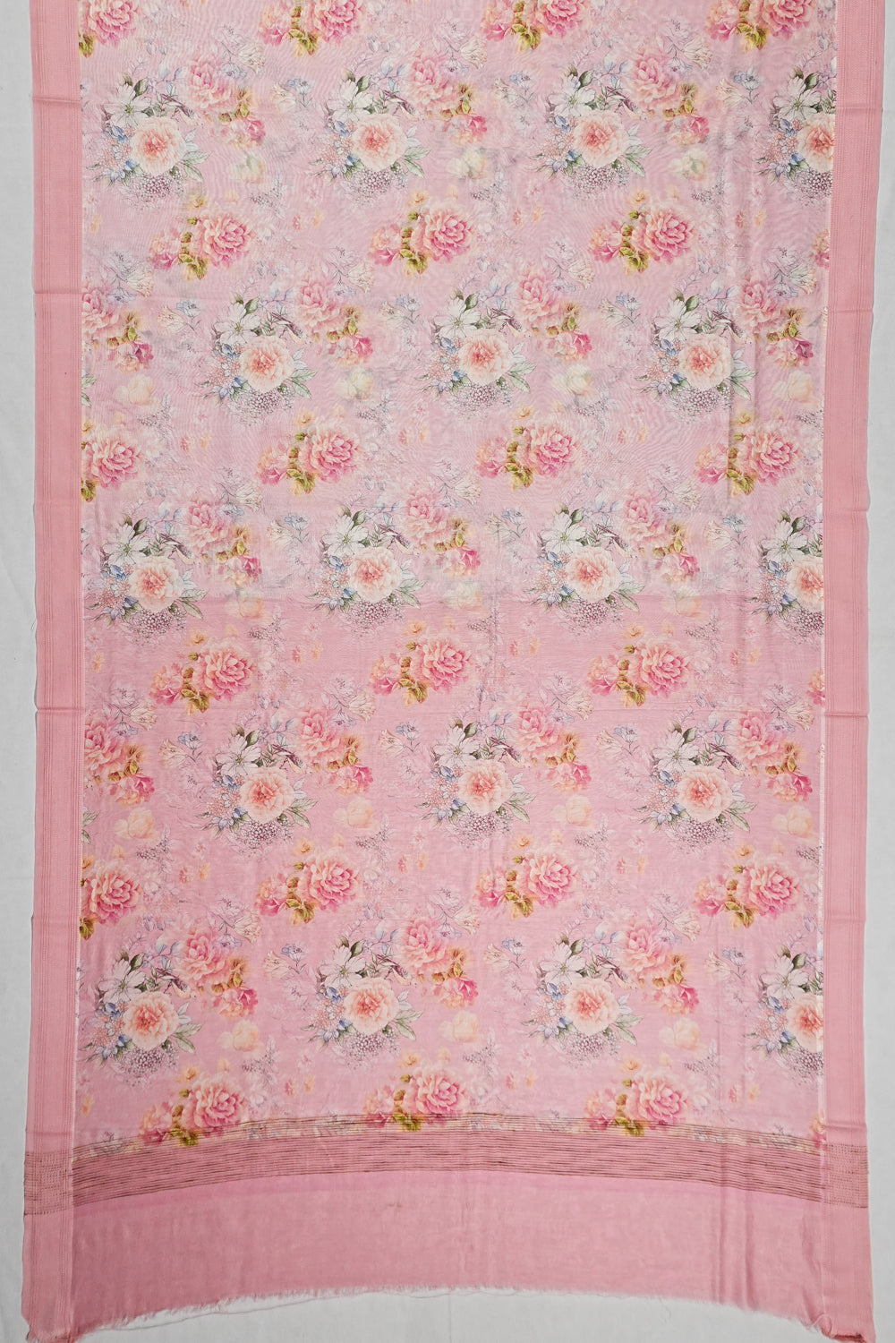 Chanderi Cotton Floral Printed Peach Saree 1214962148