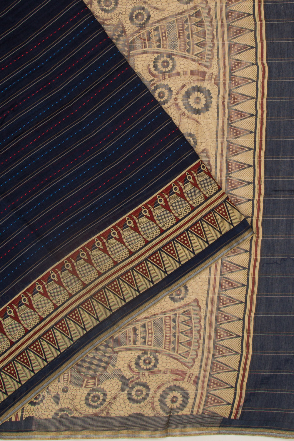 Chanderi Cotton Kanta Work Dark Blue Saree