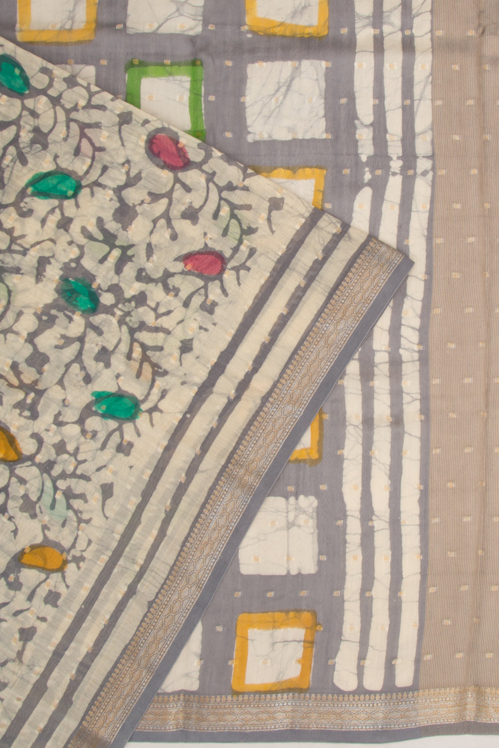 Chanderi Silk Batik Printed And Butta Cream Saree