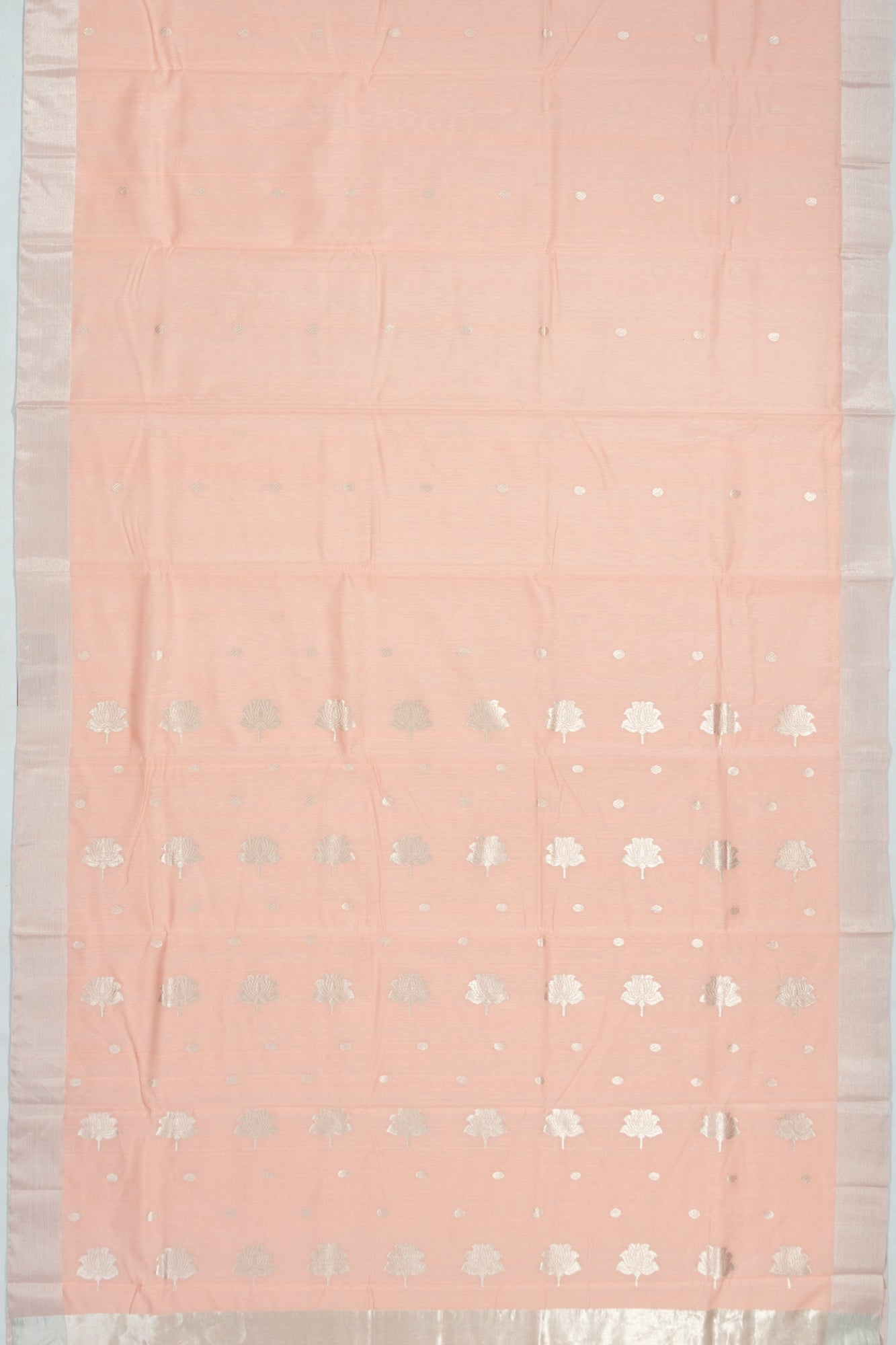 The pallu continues the theme with its silver zari floral butta, creating a harmonious flow of intricate patterns that captivate from every angle