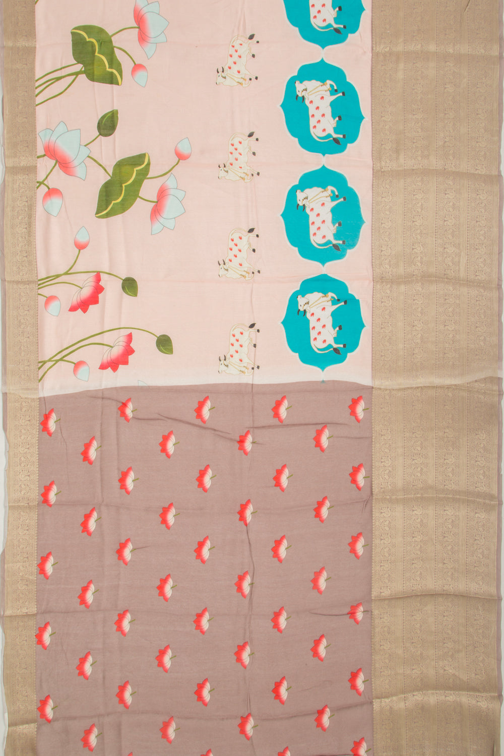 Chanderi Silk Pichwai Printed Pastel Orange Saree