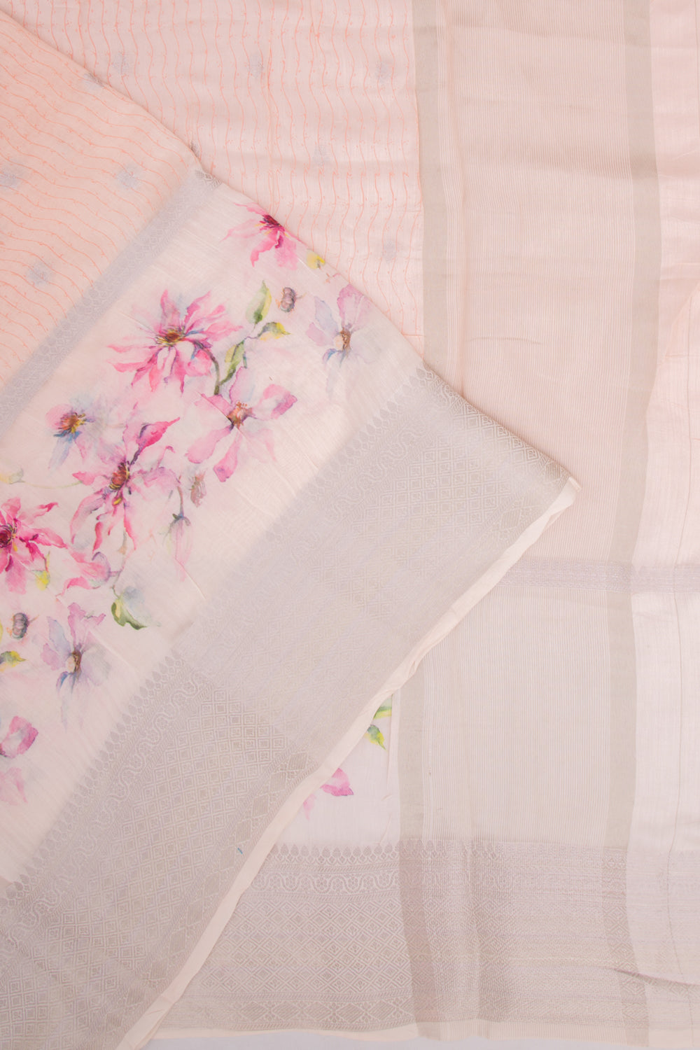 Chanderi Silk Printed And Butta Pastel Orange Saree