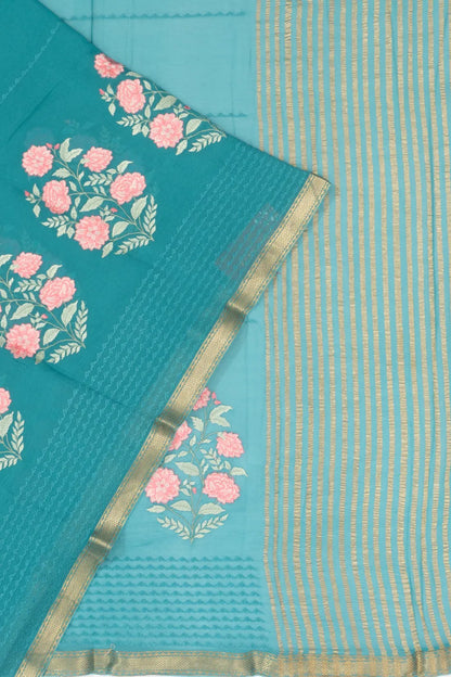 A self gold zari brocade small border lends a delicate shimmer, elevating its timeless beauty.