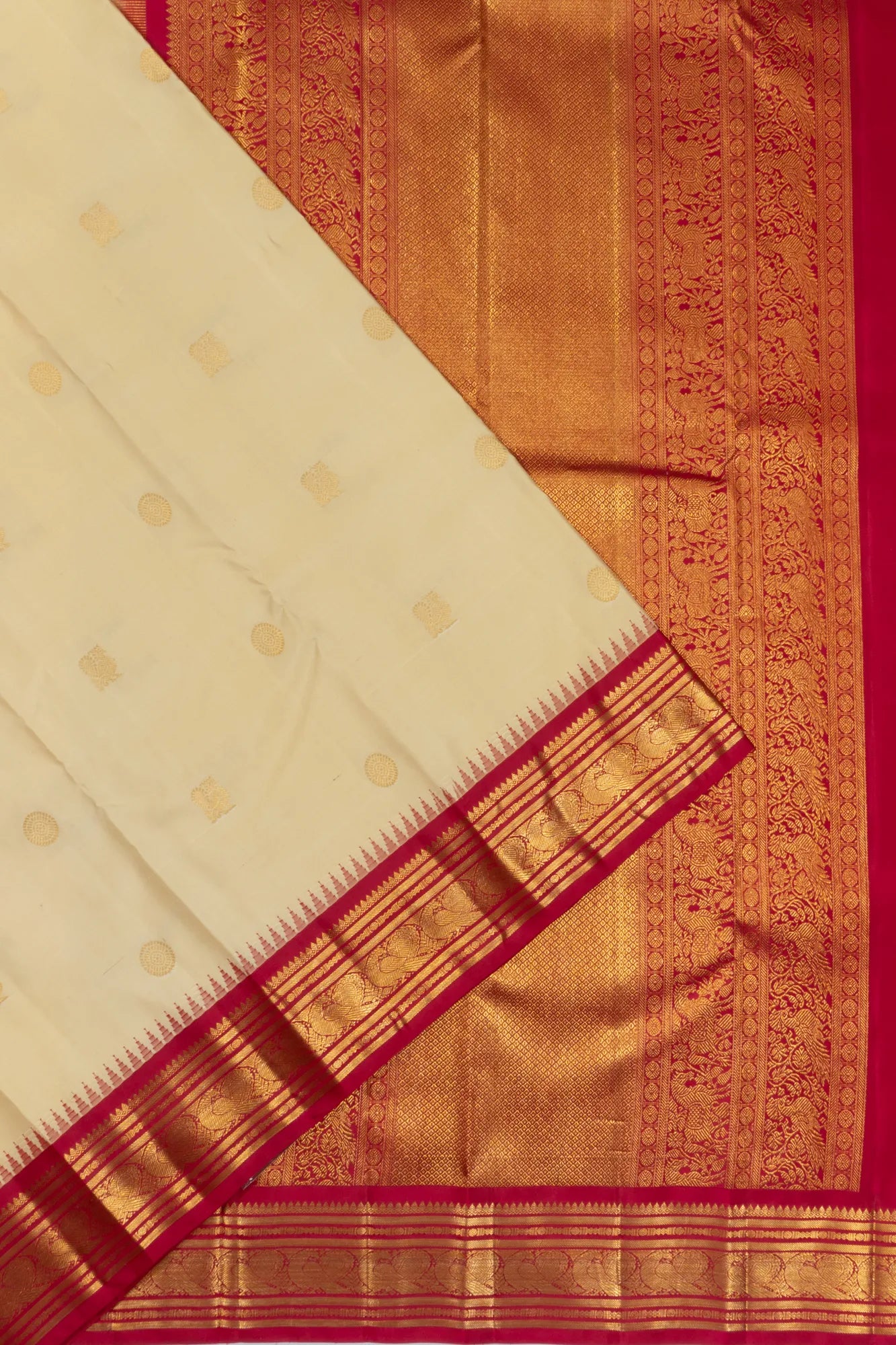 Classic Kanchipuram Silk Butta Cream Saree