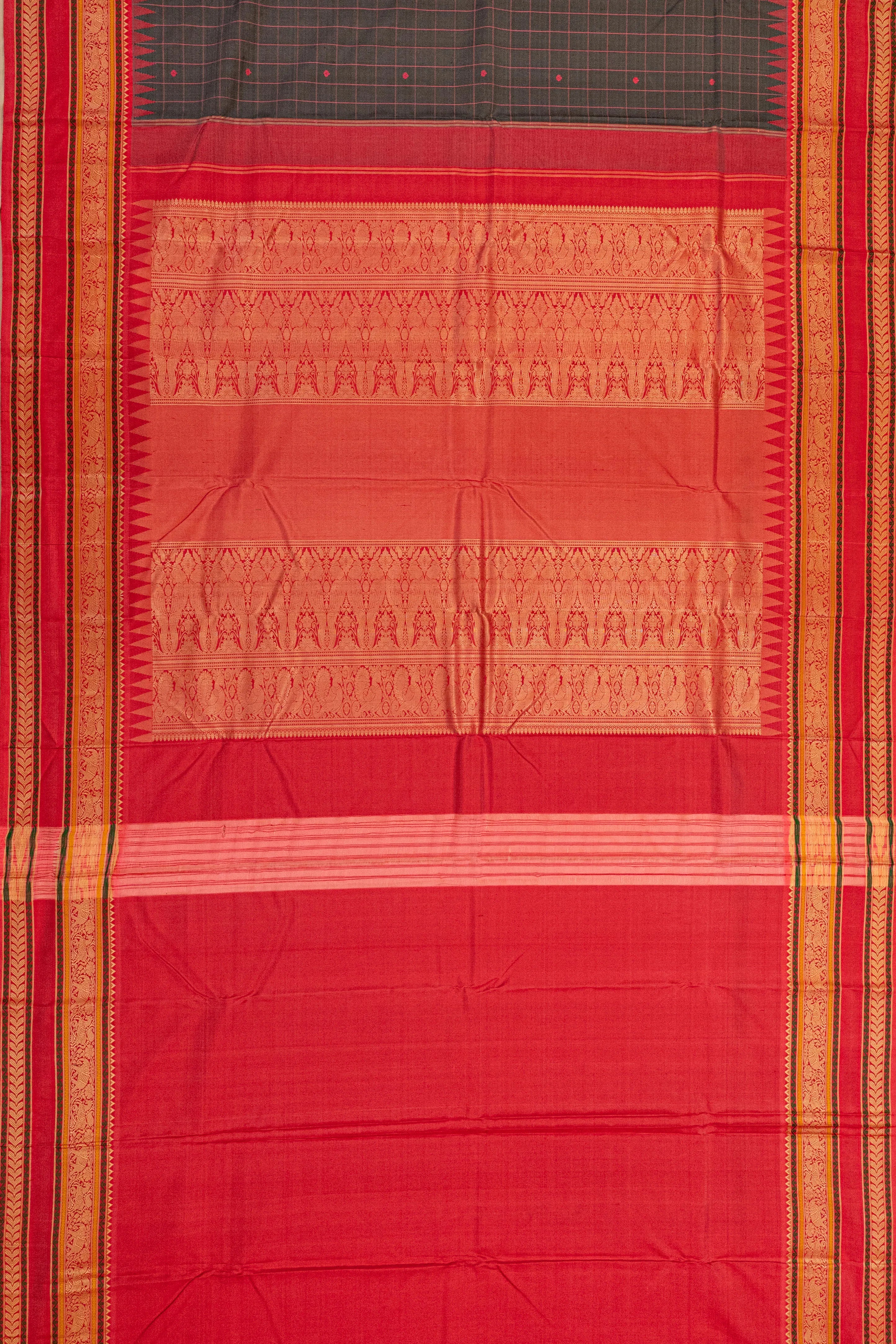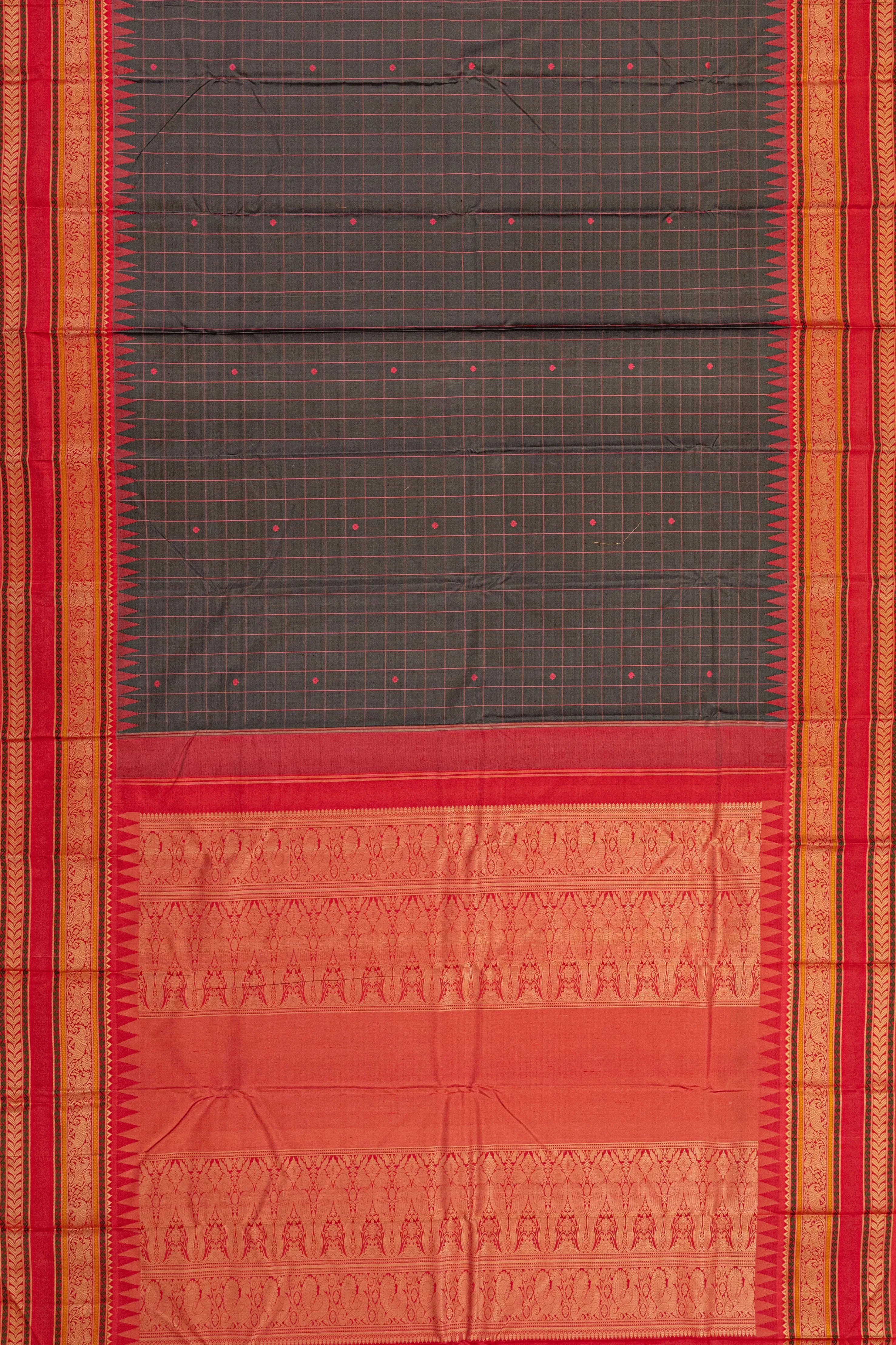 Classic Kanchipuram Silk Checks And Butta Black Saree