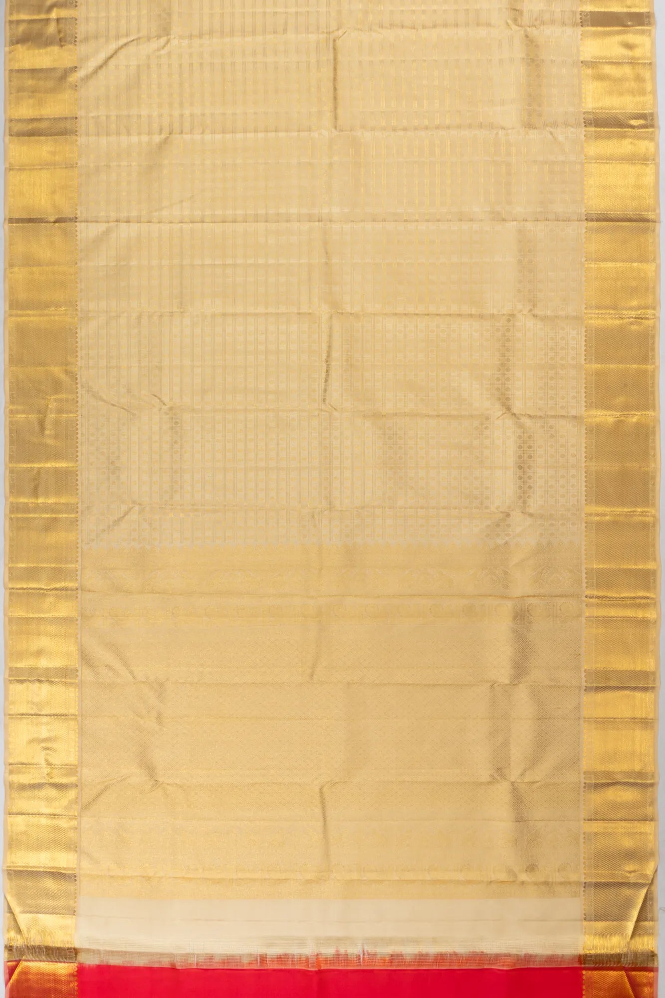 Classic Kanchipuram Silk Checks And Butta Cream Saree