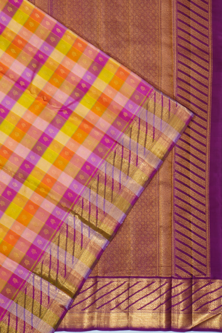Classic Kanchipuram Silk Checks And Butta Multicolour Saree