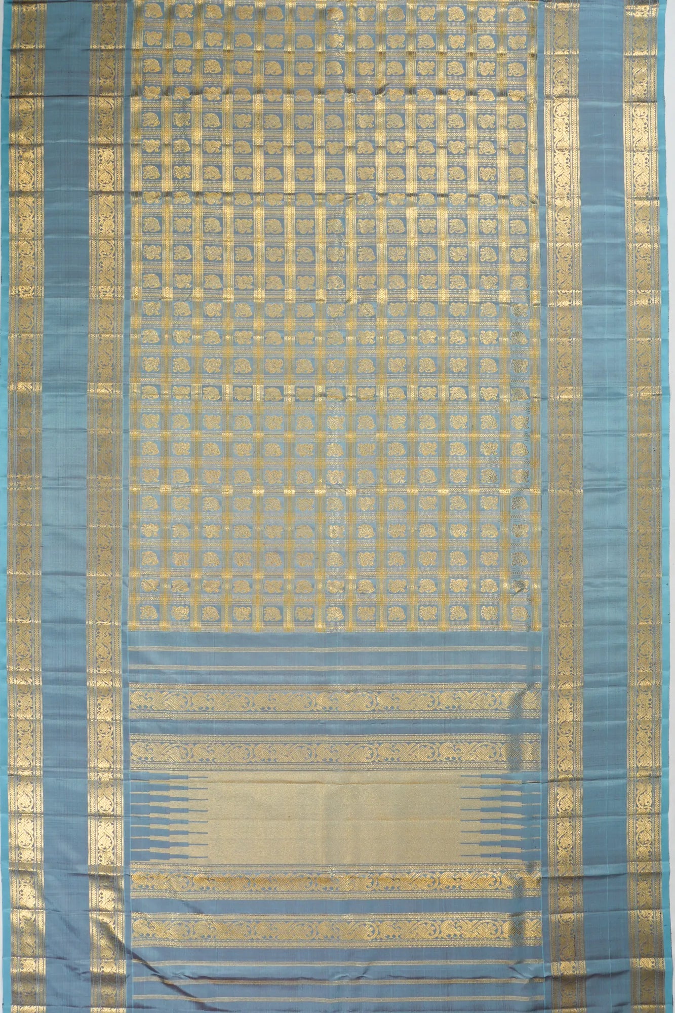 Classic Kanchipuram Silk Checks And Butta Powder Blue Saree