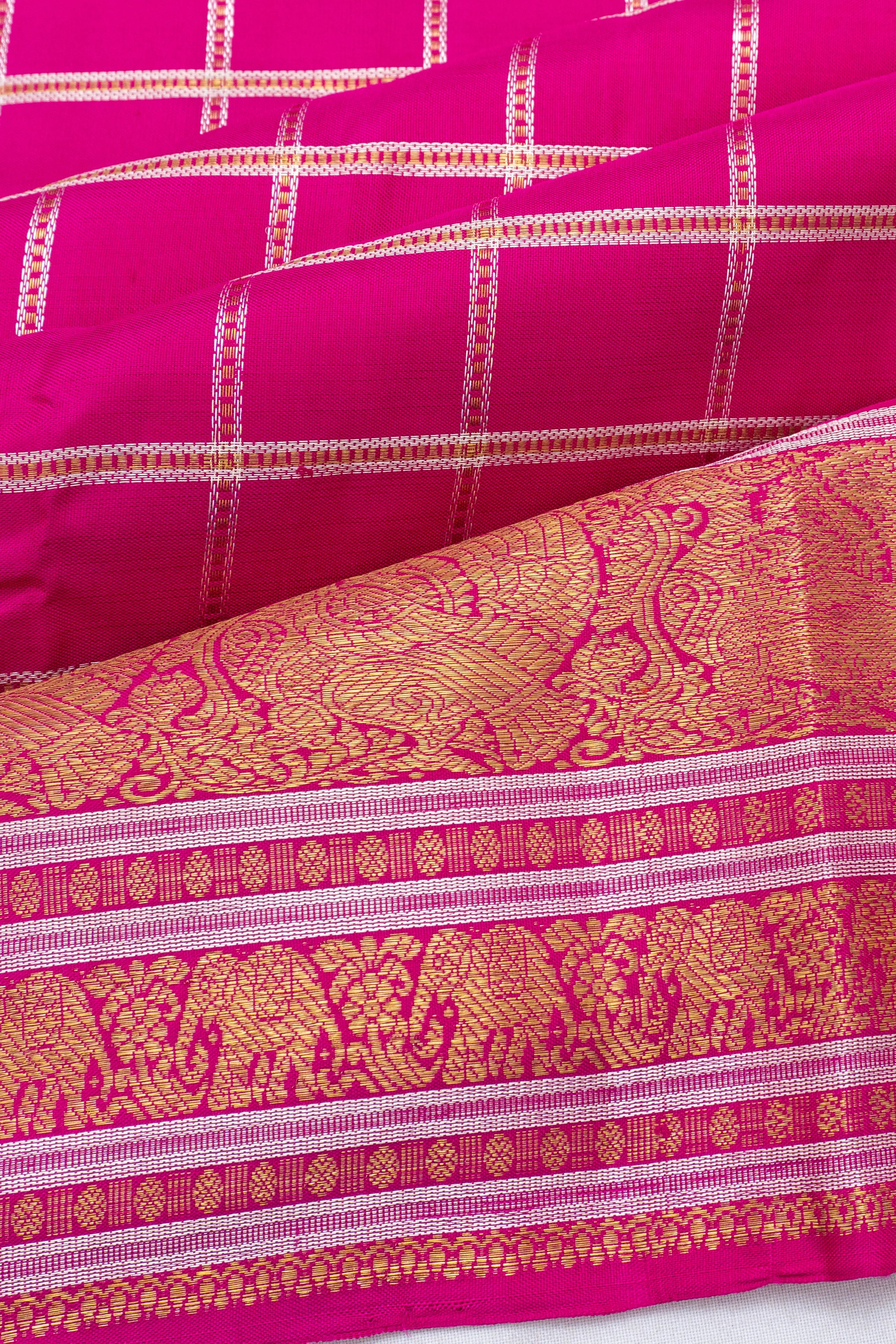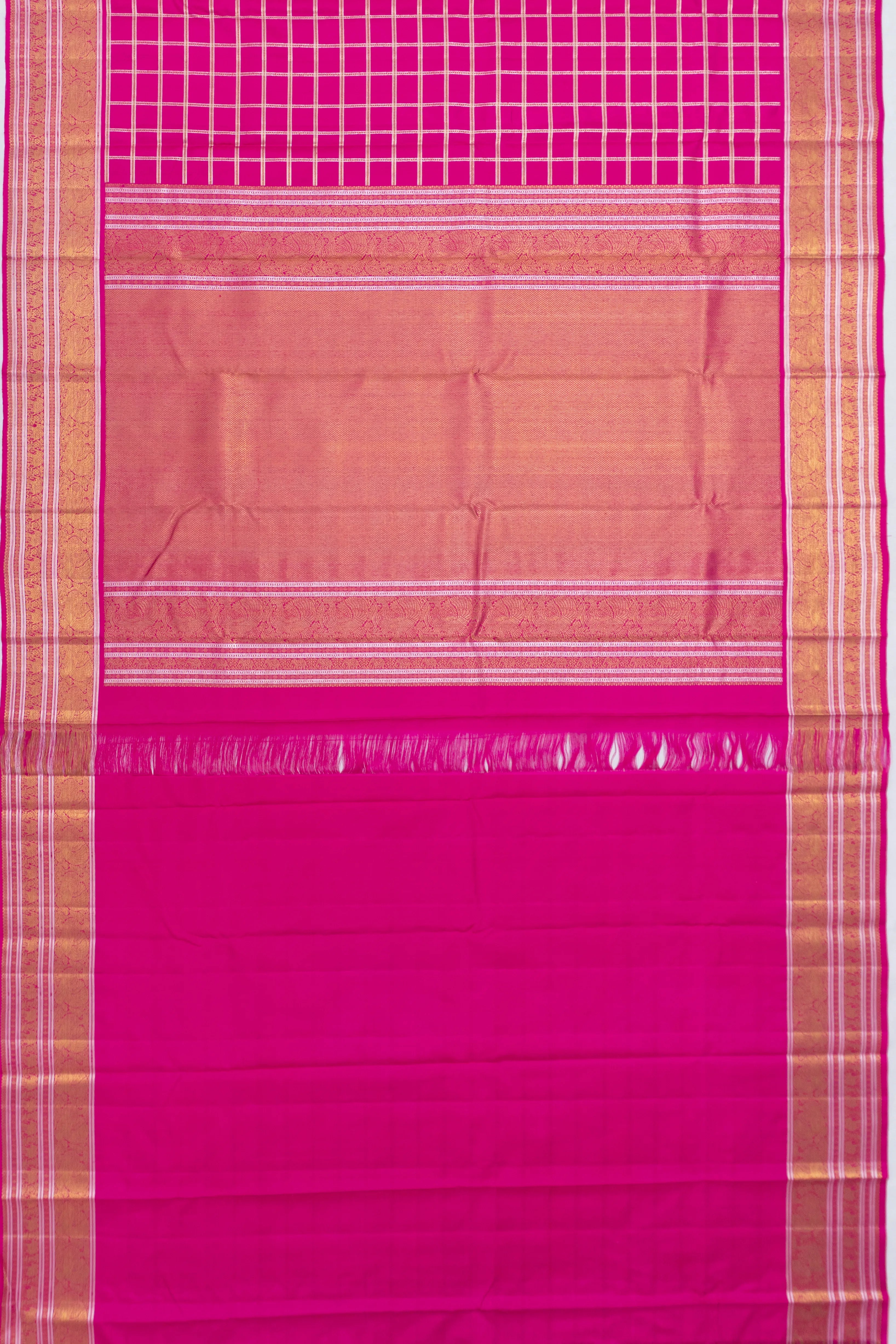 Classic Kanchipuram Silk Checks Rani Pink Saree