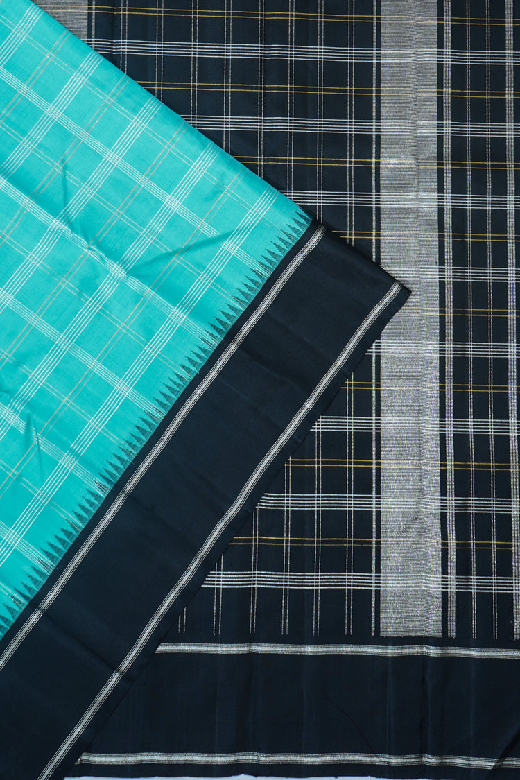 Classic Kanchipuram Silk Checks Sky Blue Saree