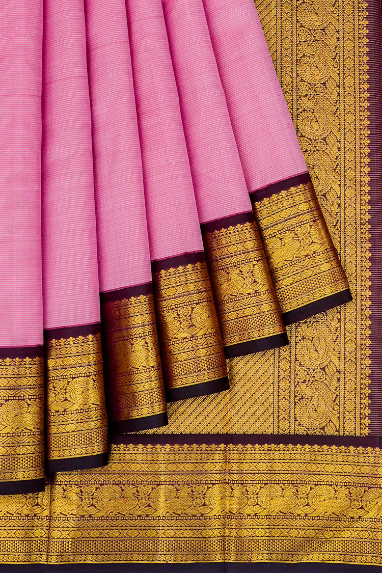 Classic Kanchipuram Silk Oosi Lines Lilac Saree