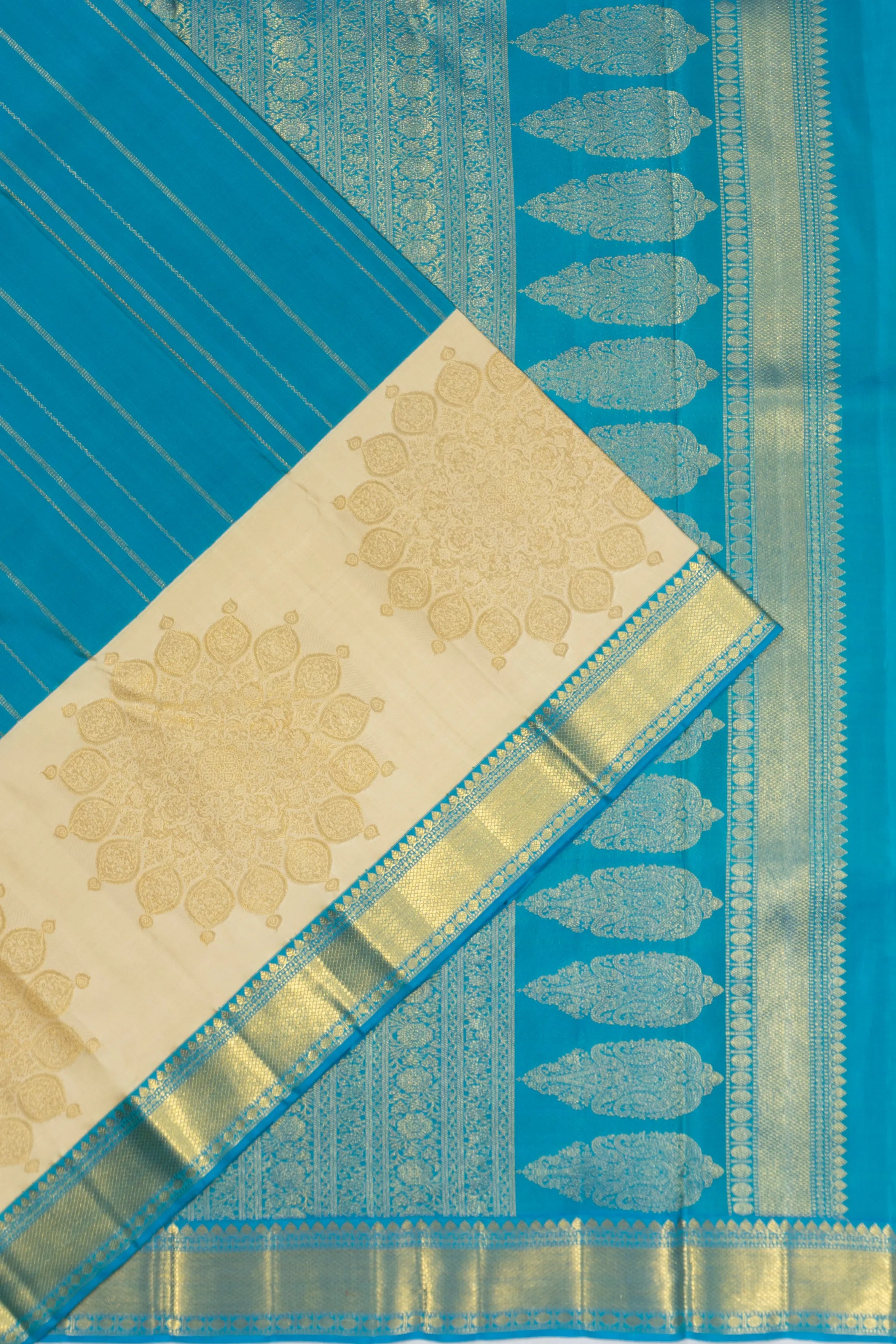 Classic Kanchipuram Silk Vertical Lines Blue Saree
