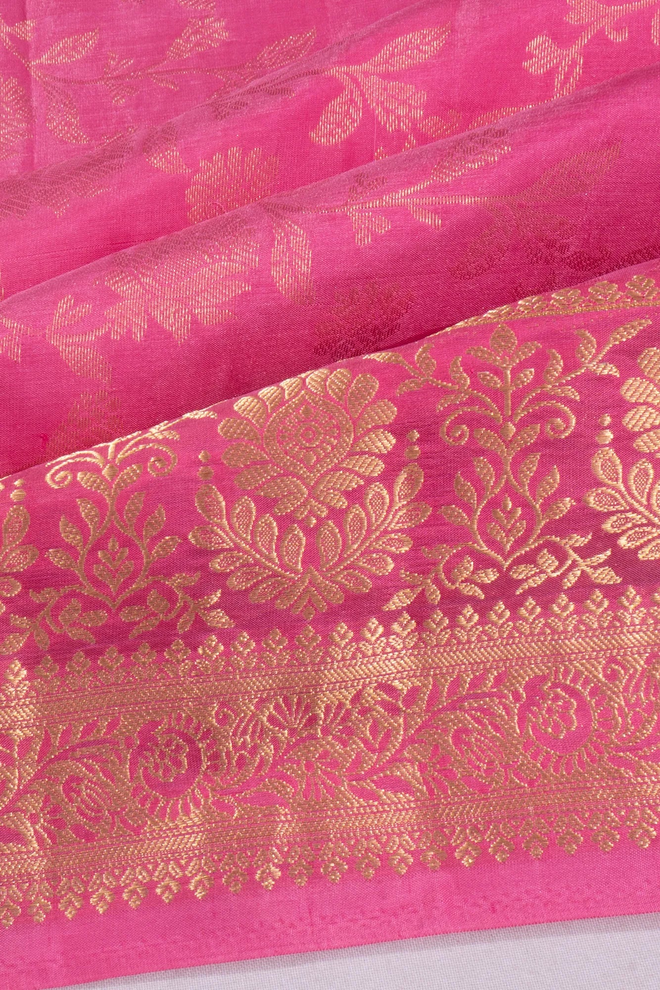 Adorned with a self gold zari floral brocade small border, this saree's floral vines add a touch of delicate charm