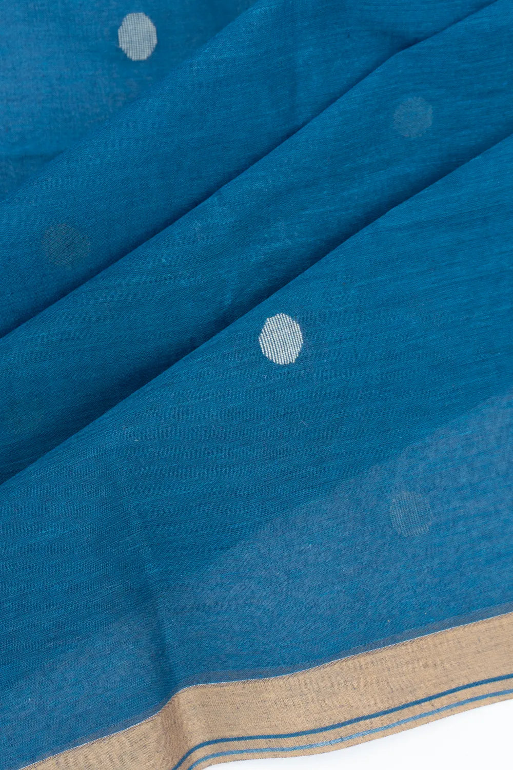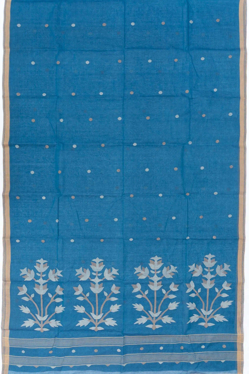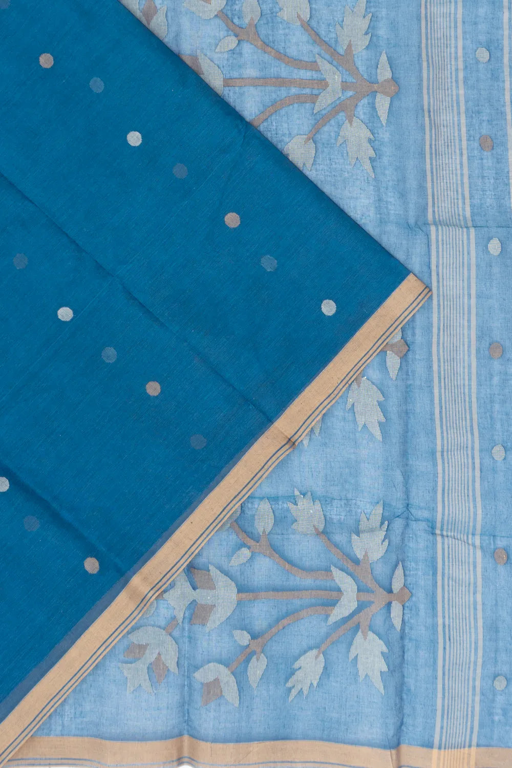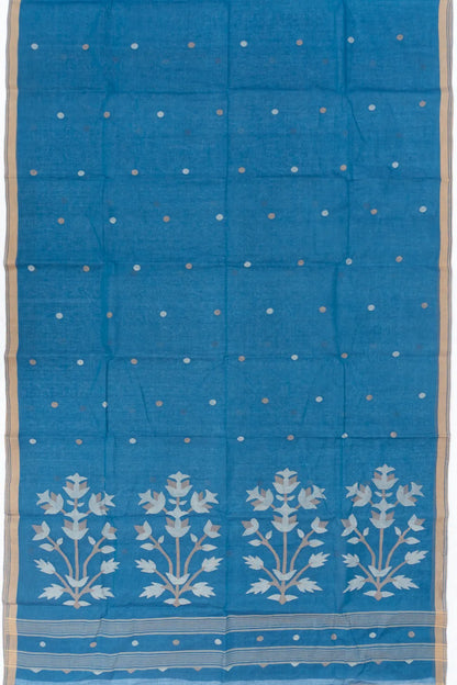 Dhakai Cotton Butta Dark Blue Saree With Jamdani Pallu
