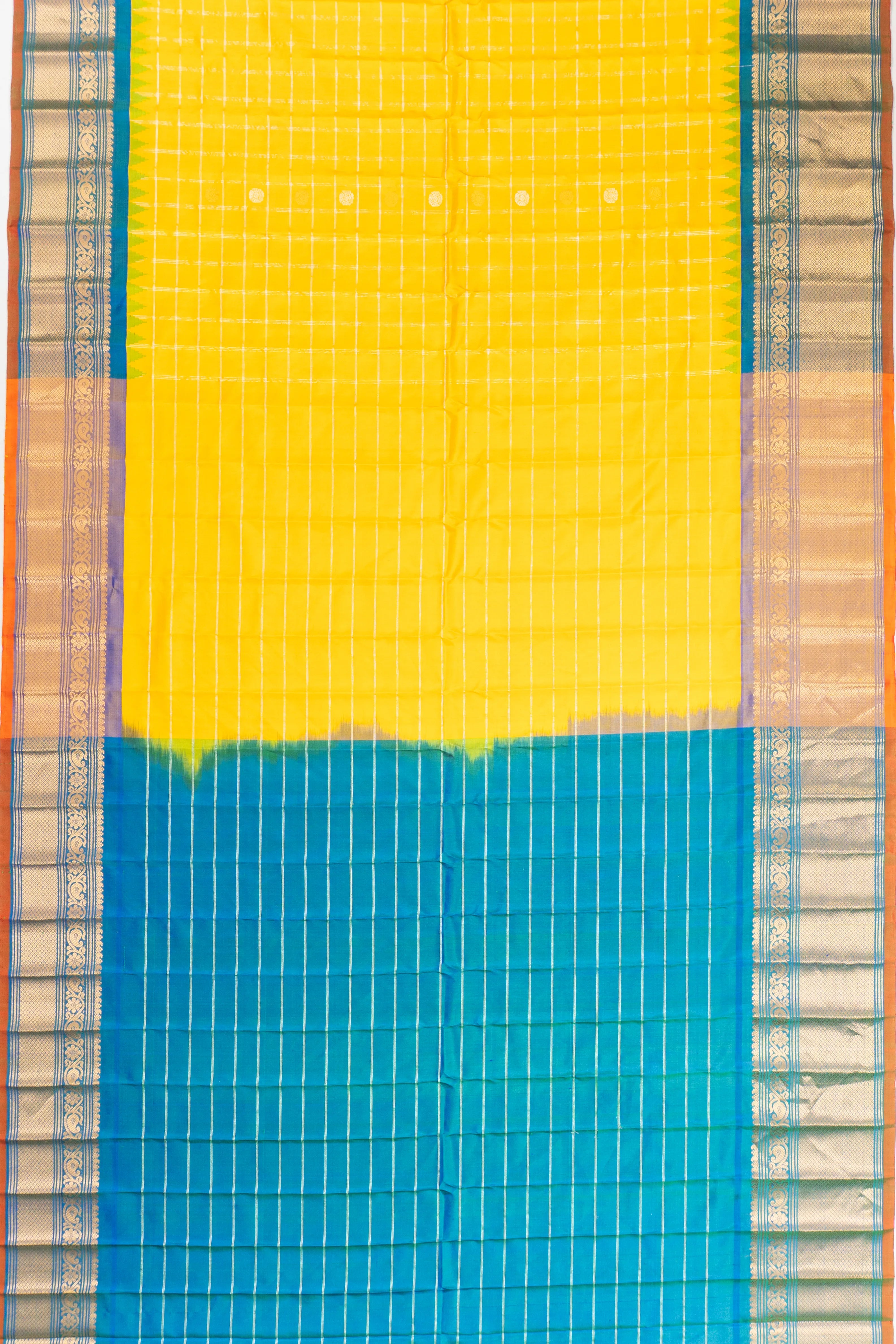 The saree's body is adorned with intricate checks and butta designs, exuding a graceful charm that is both timeless and contemporary