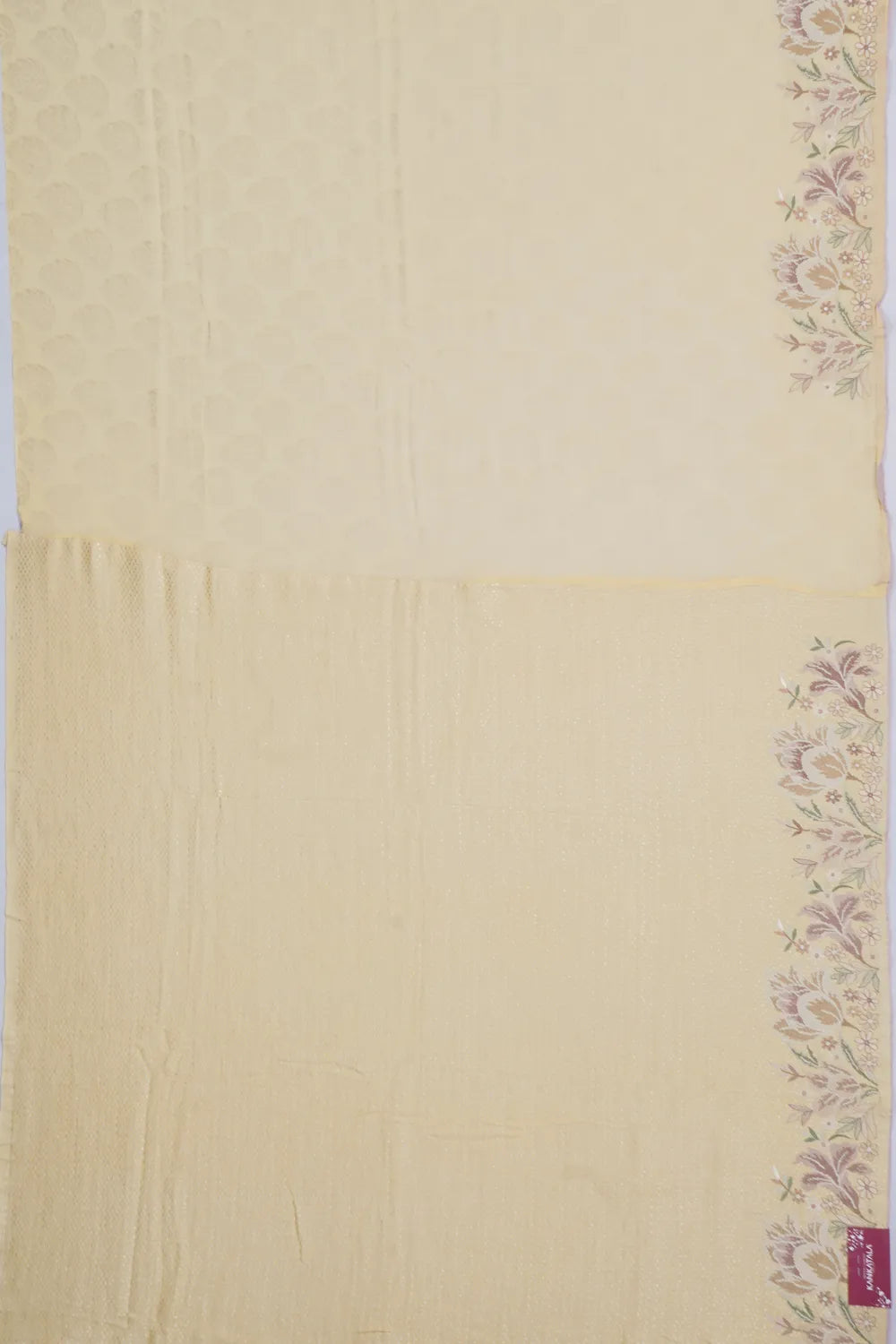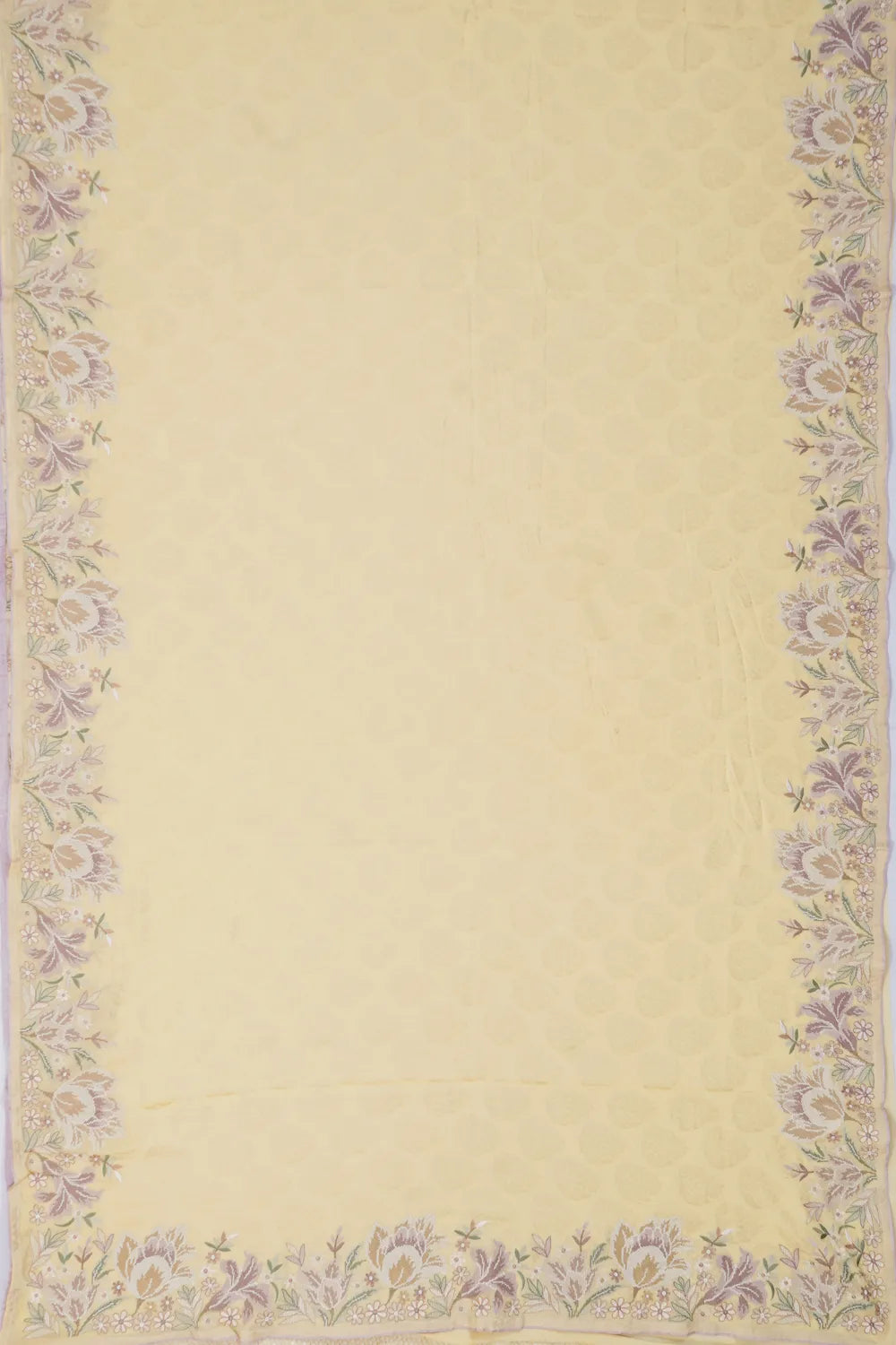 Georgette Butta Pastel Yellow Saree With Embroidery Border