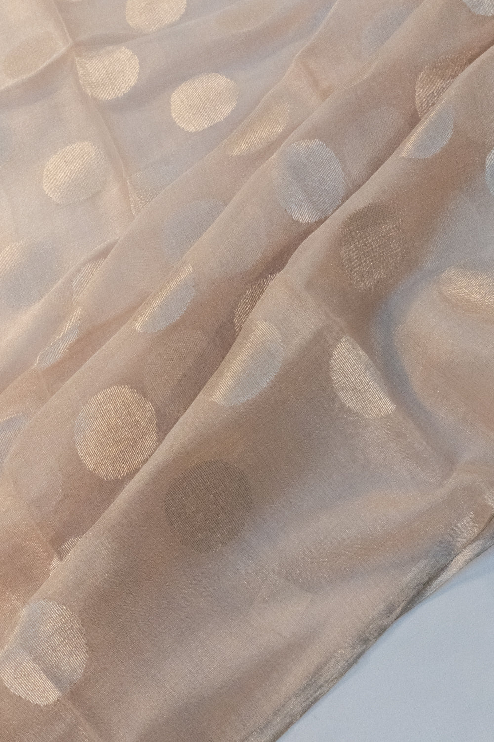 Gold zari tissue with silver zari polka dot butta, creating a chic and playful pattern.