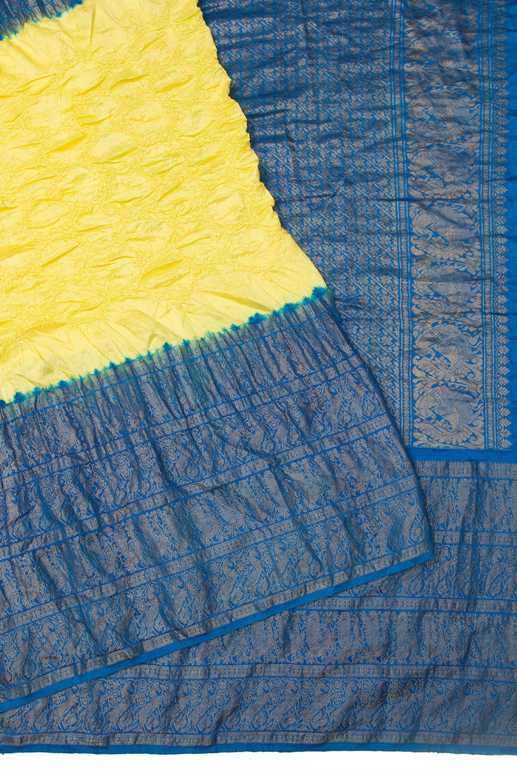 Kanchipuram Silk Bandhani Lime Yellow Saree